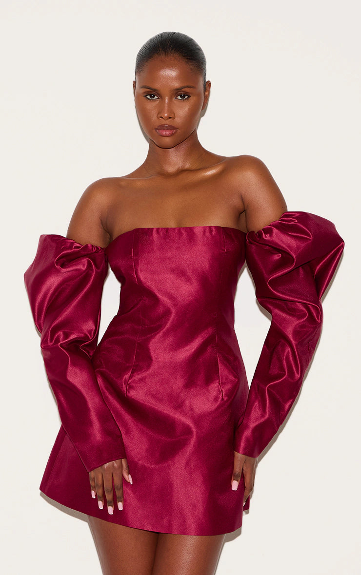 Made from a wine material with an oversized statement puff sleeve and an A line design. Just team this wine oversized puff sleeve A line shift dress with your go-to heels and minimal accessories to finish off the look everyone is obsessing over right now.