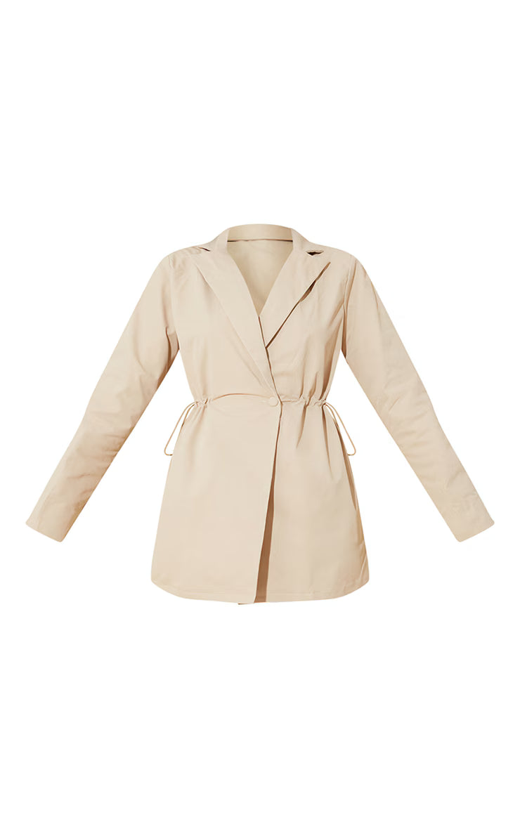 Refine your silhouette with this considered blazer dress. Crafted from a woven fabric in a versatile stone hue, this piece offers a contemporary take on tailoring. The long sleeves add a touch of refinement, while the toggle waist allows you to cinch the shape for a personalised fit. Elevate the look further with a delicate chain necklace from our jewelry collection for an assured after-dark ensemble.