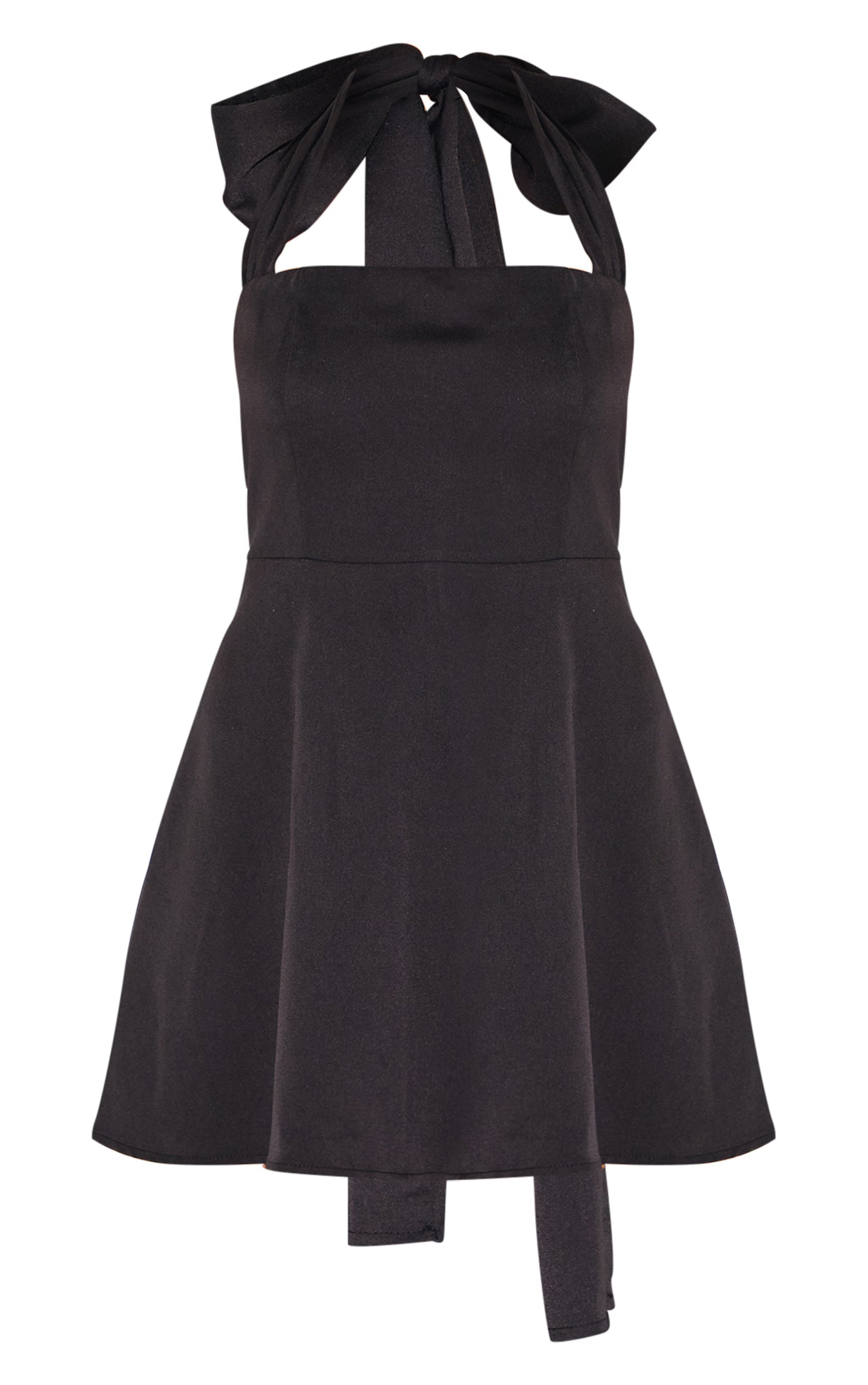 A masterclass in minimalist dressing, this black woven shift dress offers an exercise in understated chic. The tie neck detail elevates the silhouette, lending a touch of considered detail to the clean lines. Crafted from a subtly textured woven material, this dress provides both structure and ease of wear. Style it with a sculptural cuff from our jewelry collection for a quietly confident after-dark look.
