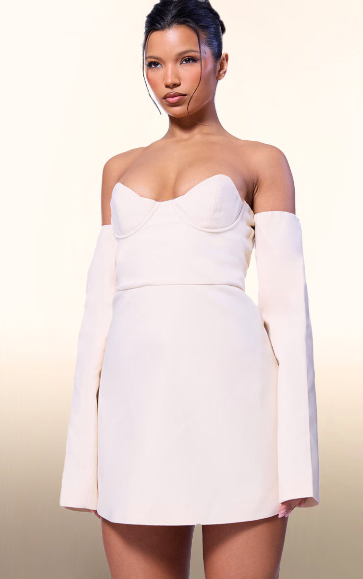 PLT Label Cream Bust Detail Tailored A-line Mini Dress