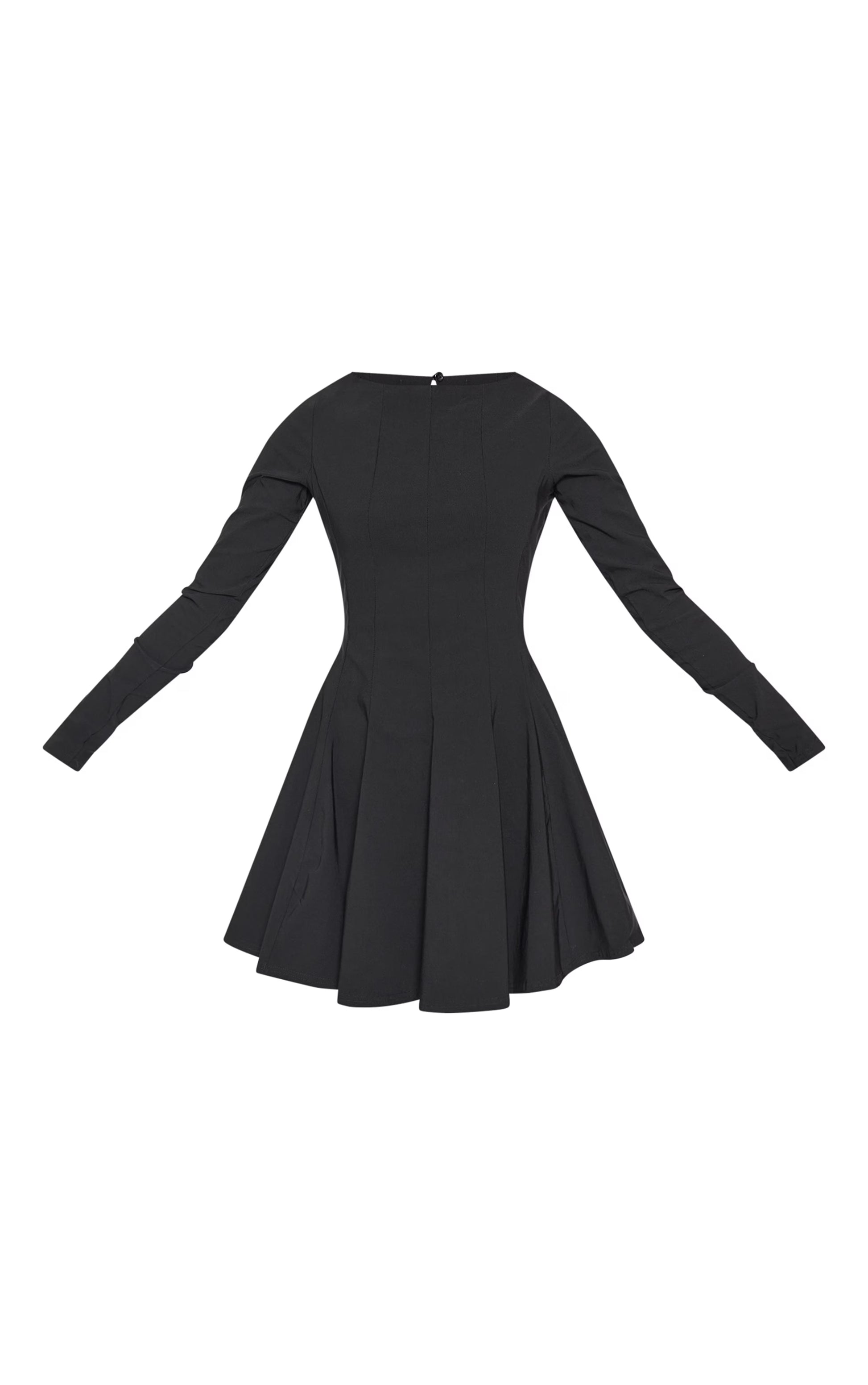 Black Stretch Woven Boat Neck Long Sleeve Pleated Shift Dress