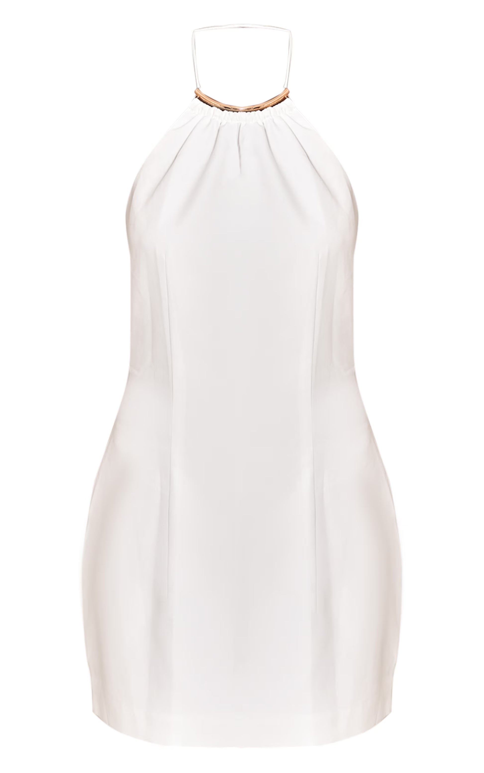White Woven Tailored Trim Neck Detail Mini Dress