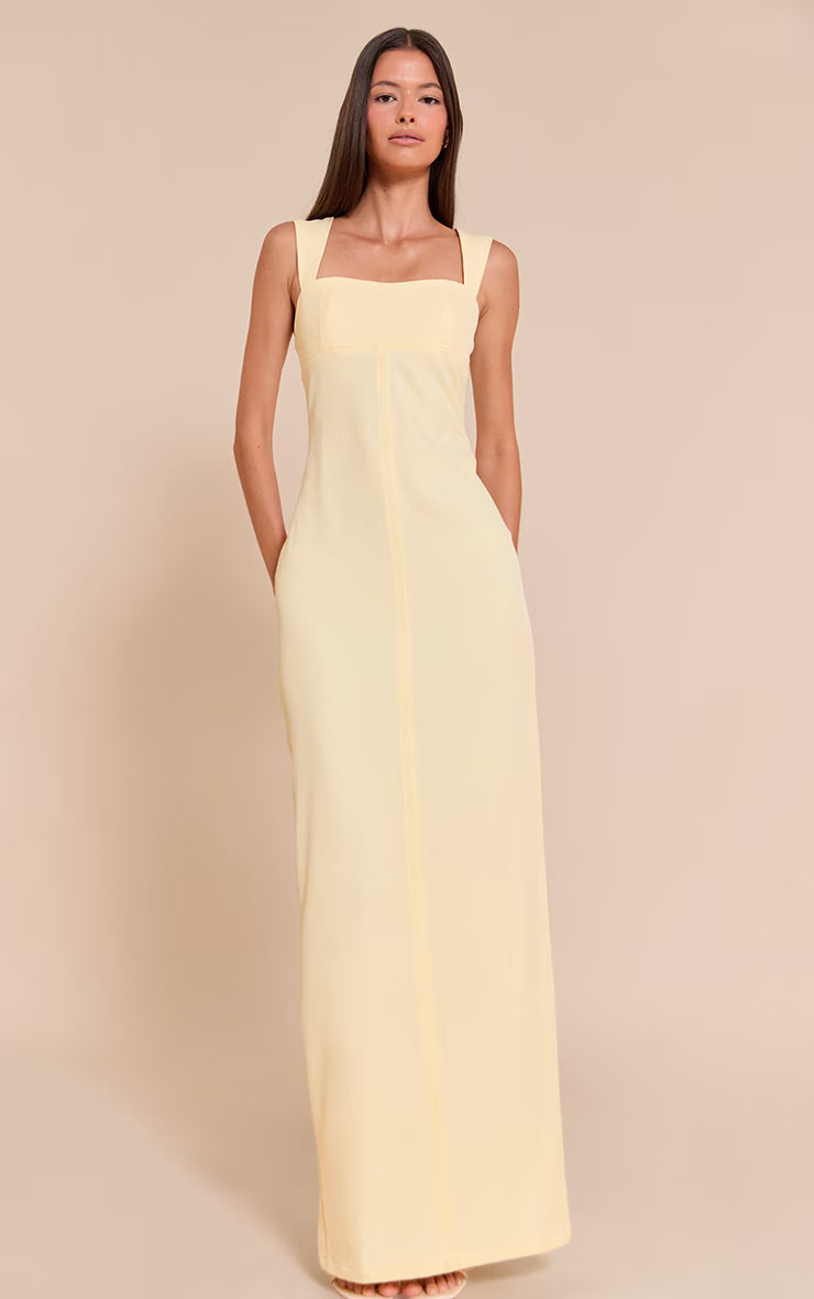 Butter Yellow Tailored Woven Strappy Maxi Dress