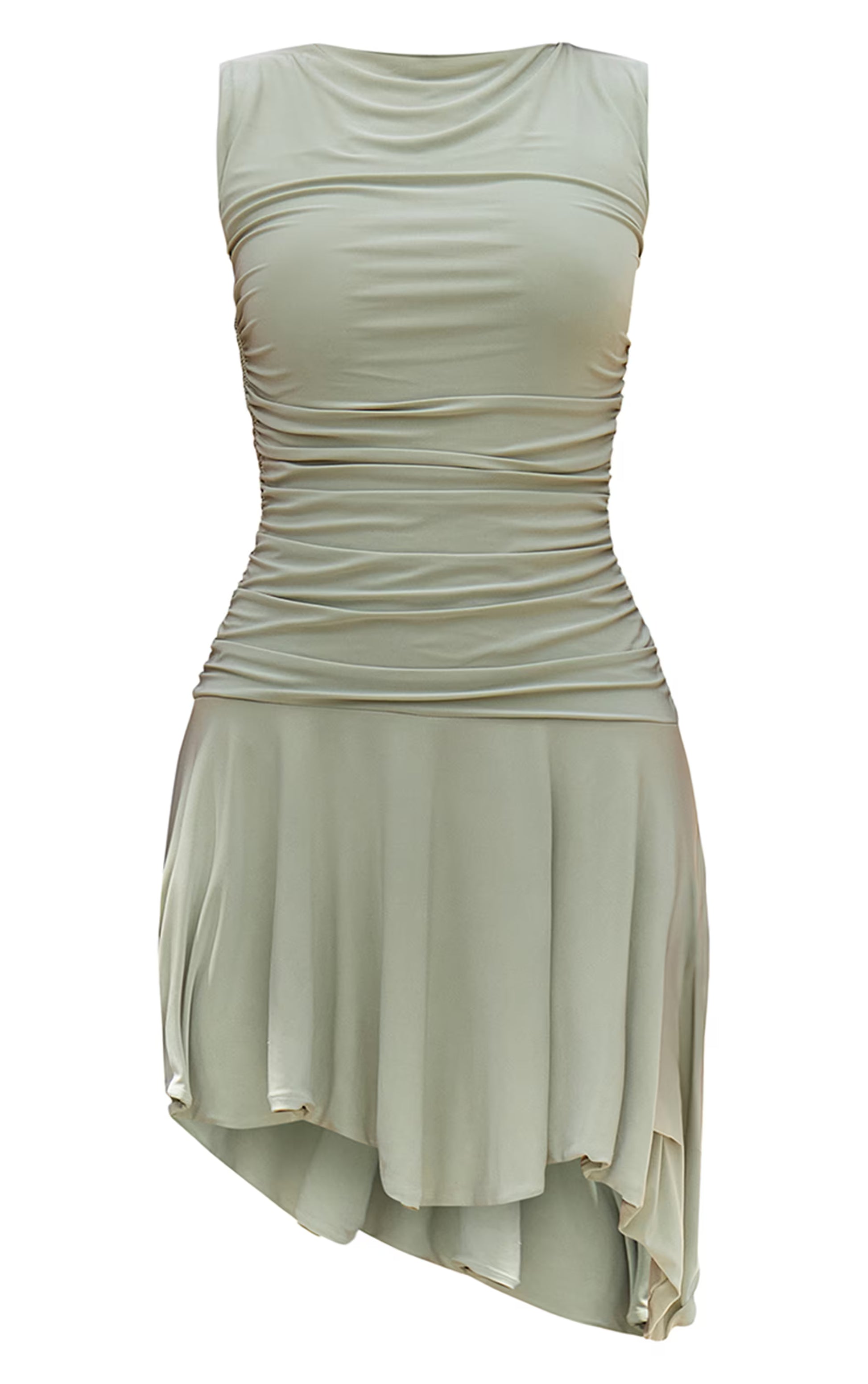 Mint Green Slinky Ruched Detail Asymmetric Mini Dress