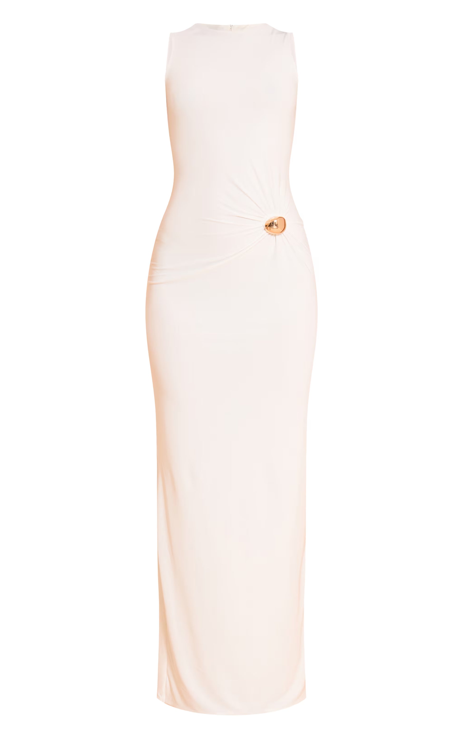 Cream Slinky Gold Trim Sleeveless Maxi Dress