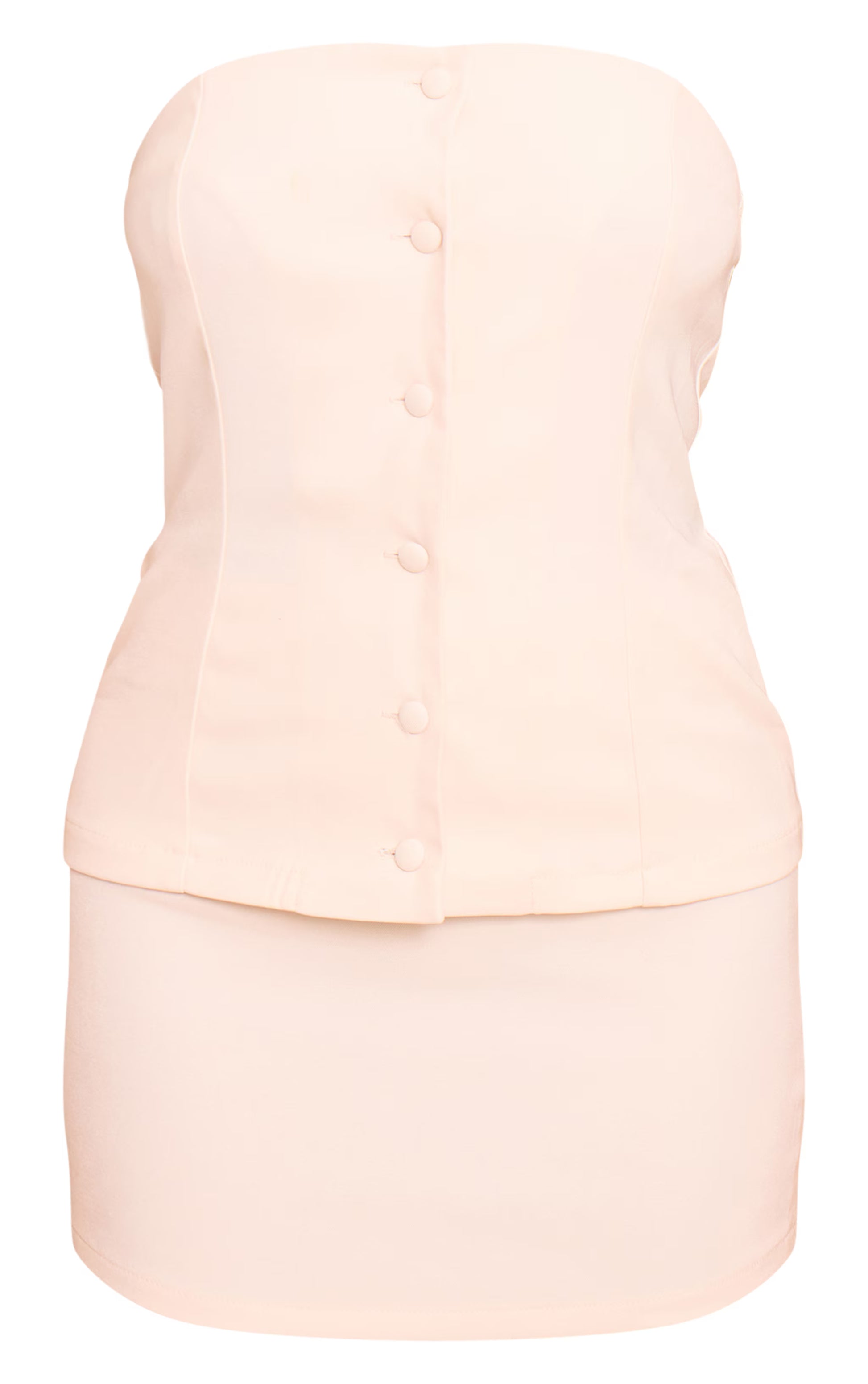 Refine your occasionwear with this cream bandeau vest detail bodycon dress, where tailoring meets sleek styling. Brought to you in a cream stretch woven fabric with vest-inspired buttons and a bodycon fit, it enhances every curve. Pair with minimal heels and gold jewelry for structured chic.