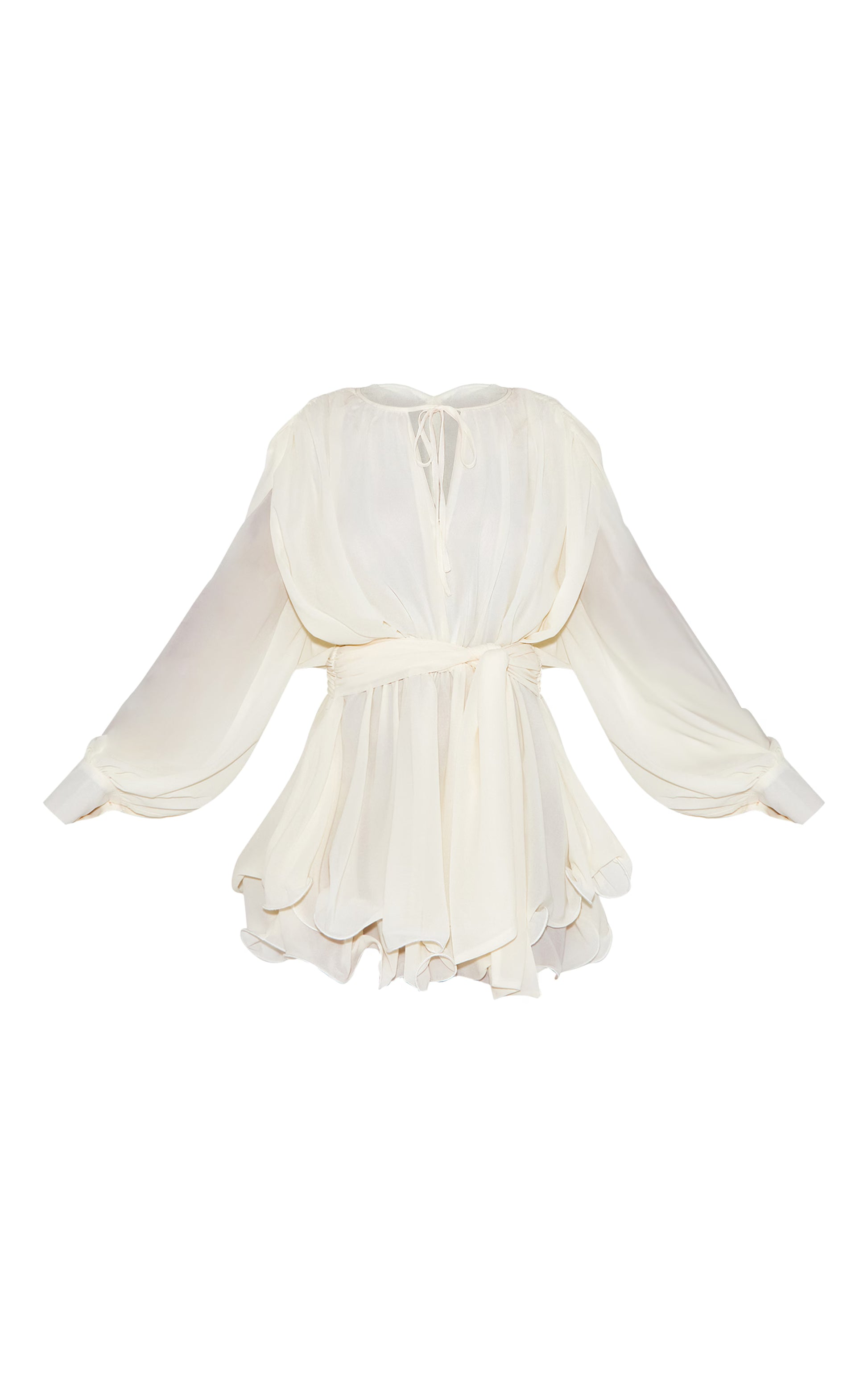 Cream Floaty Tie Detail Long Sleeve Shift Dress