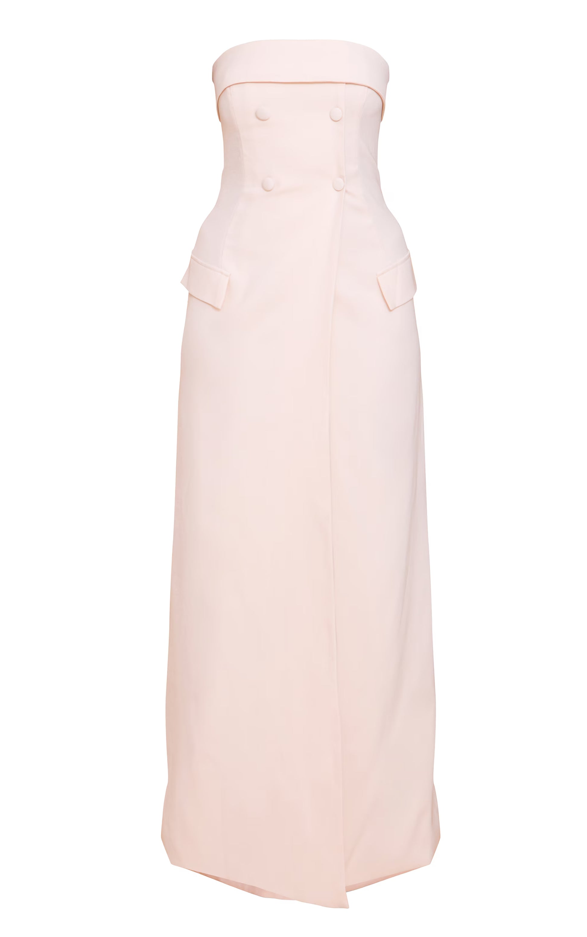 Butter Cream Tailored Woven Button Split Detail Bandeau Maxi Dress