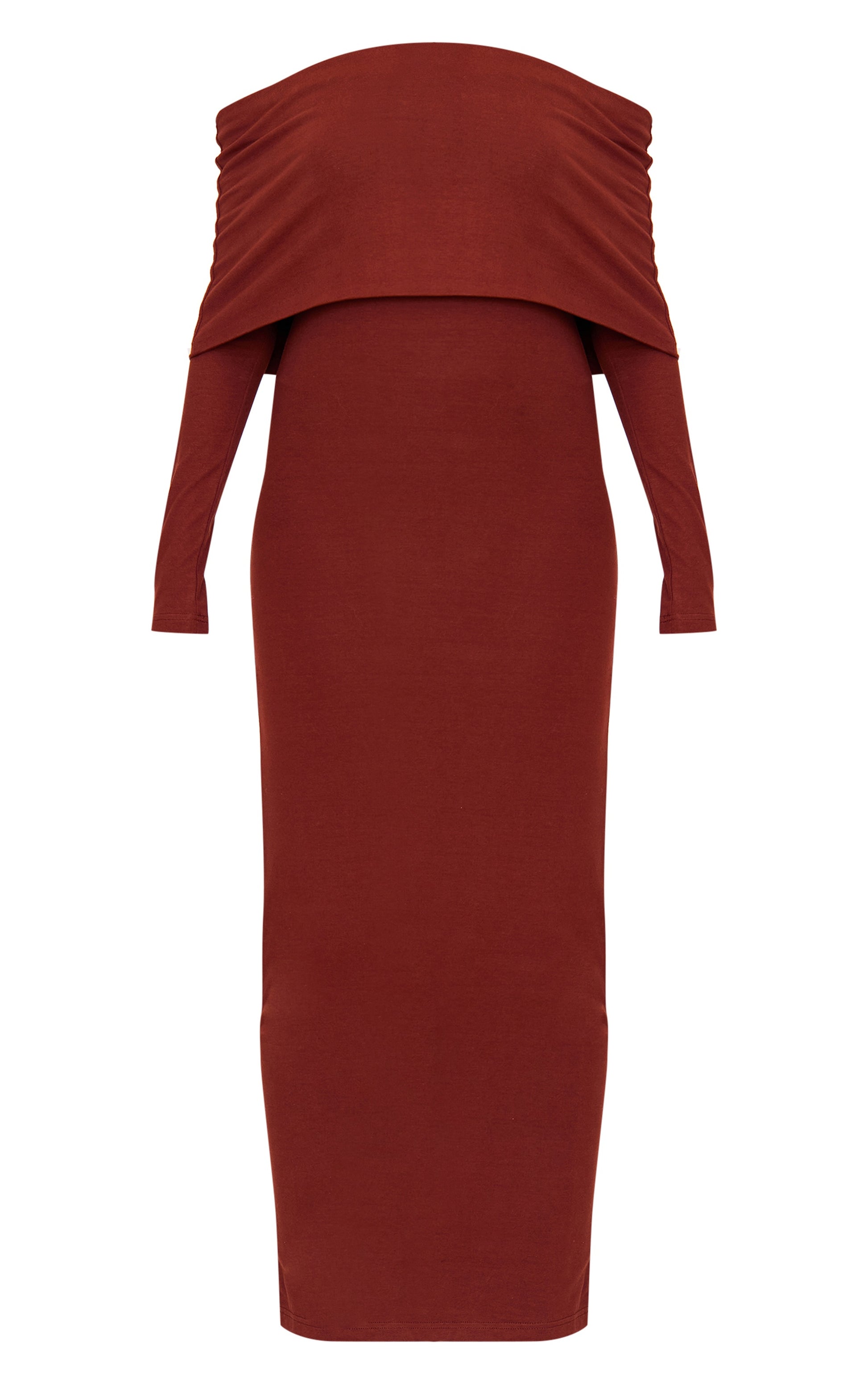Chocolate Cotton Super Oversized Bardot Maxi Dress