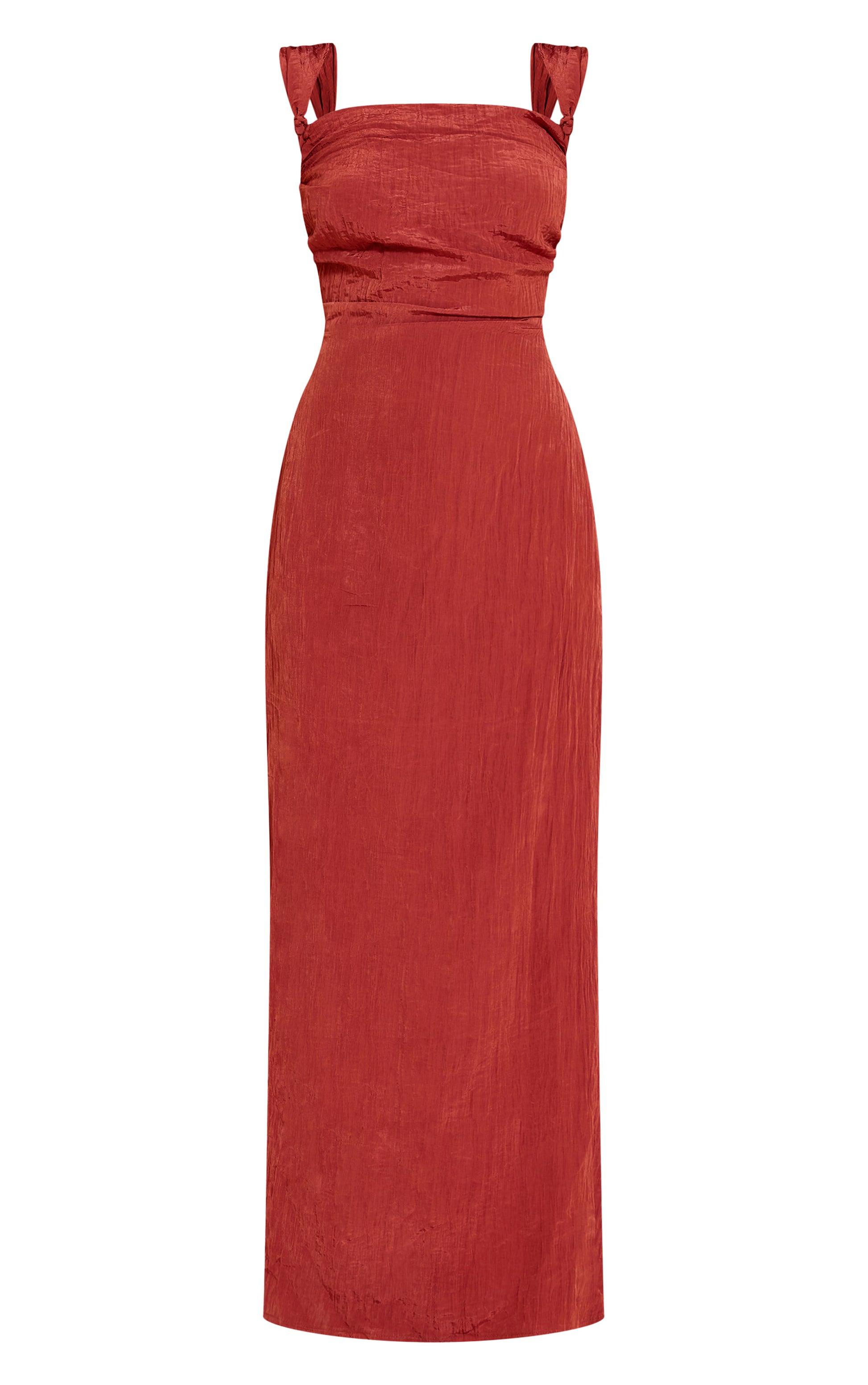 Rust Textured Knot Strap Detail Maxi Dress