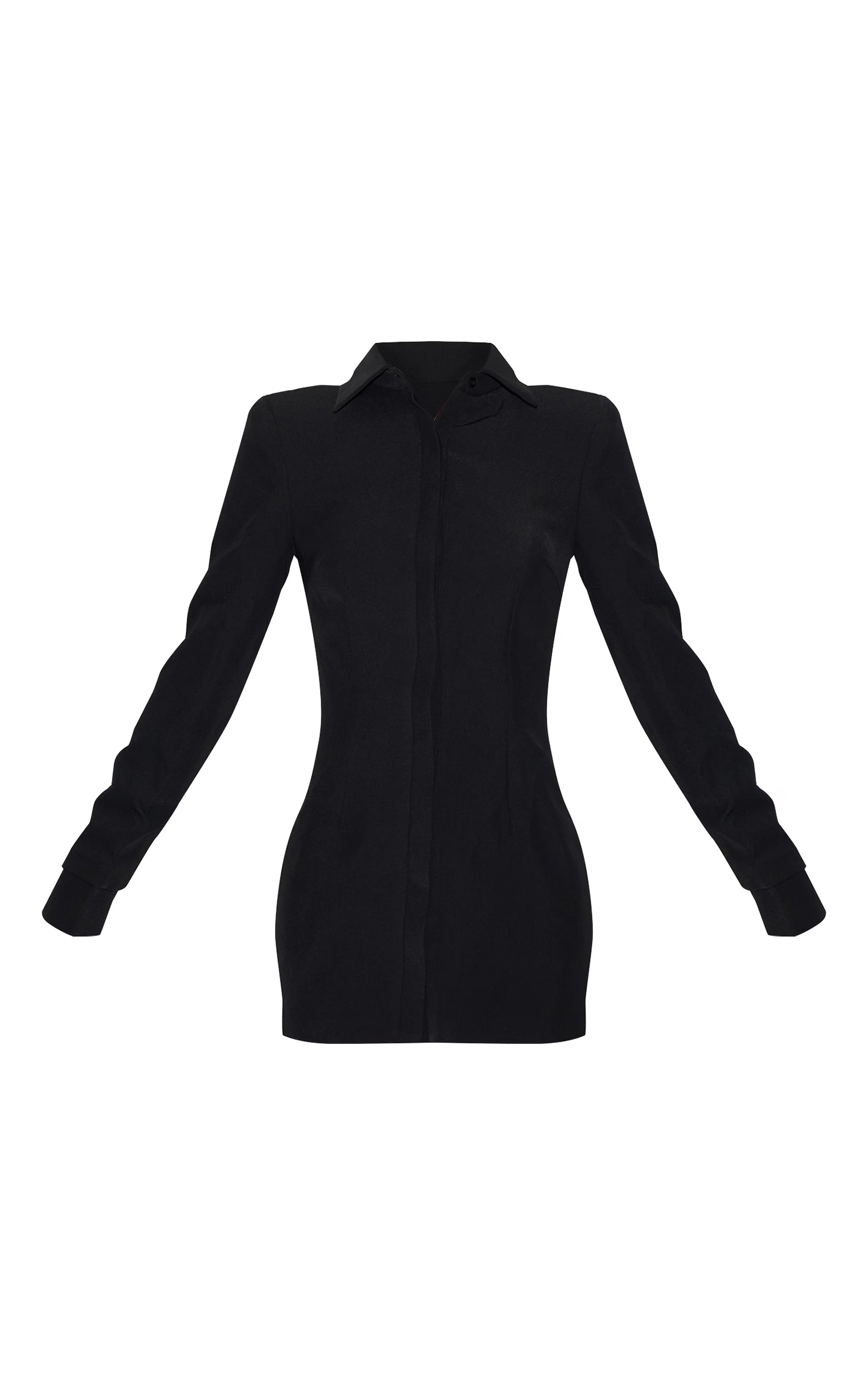 Brought to you in a black woven material with a button up fastening, a collar detail and a mini length. Be the best dressed and pair this black woven button up blazer dress with a pair of mule slip on thong heels and your favorite statement gold earrings to complete the look.