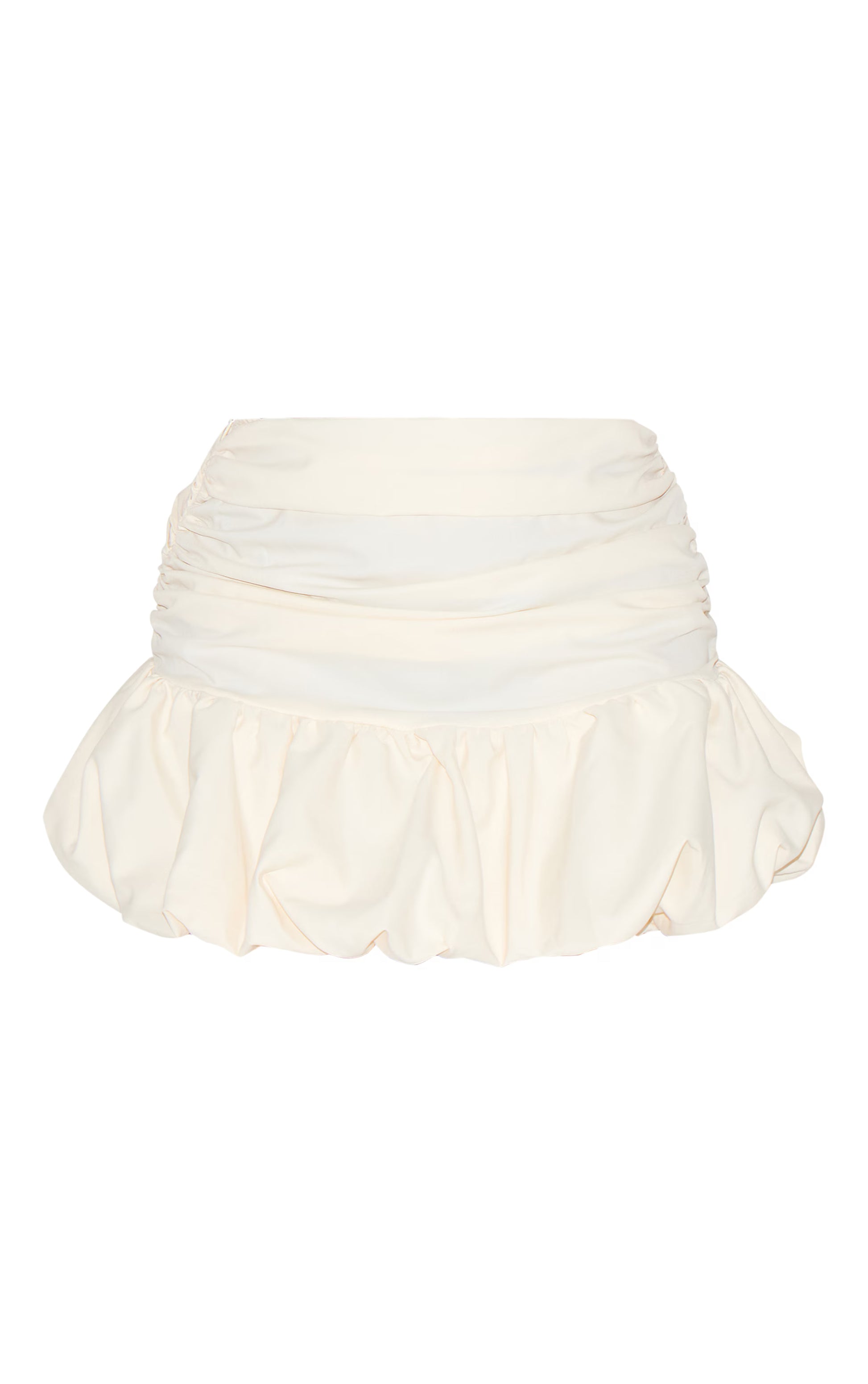 Shape Cream Ruched Dropped Hem Puffball Mini Skirt