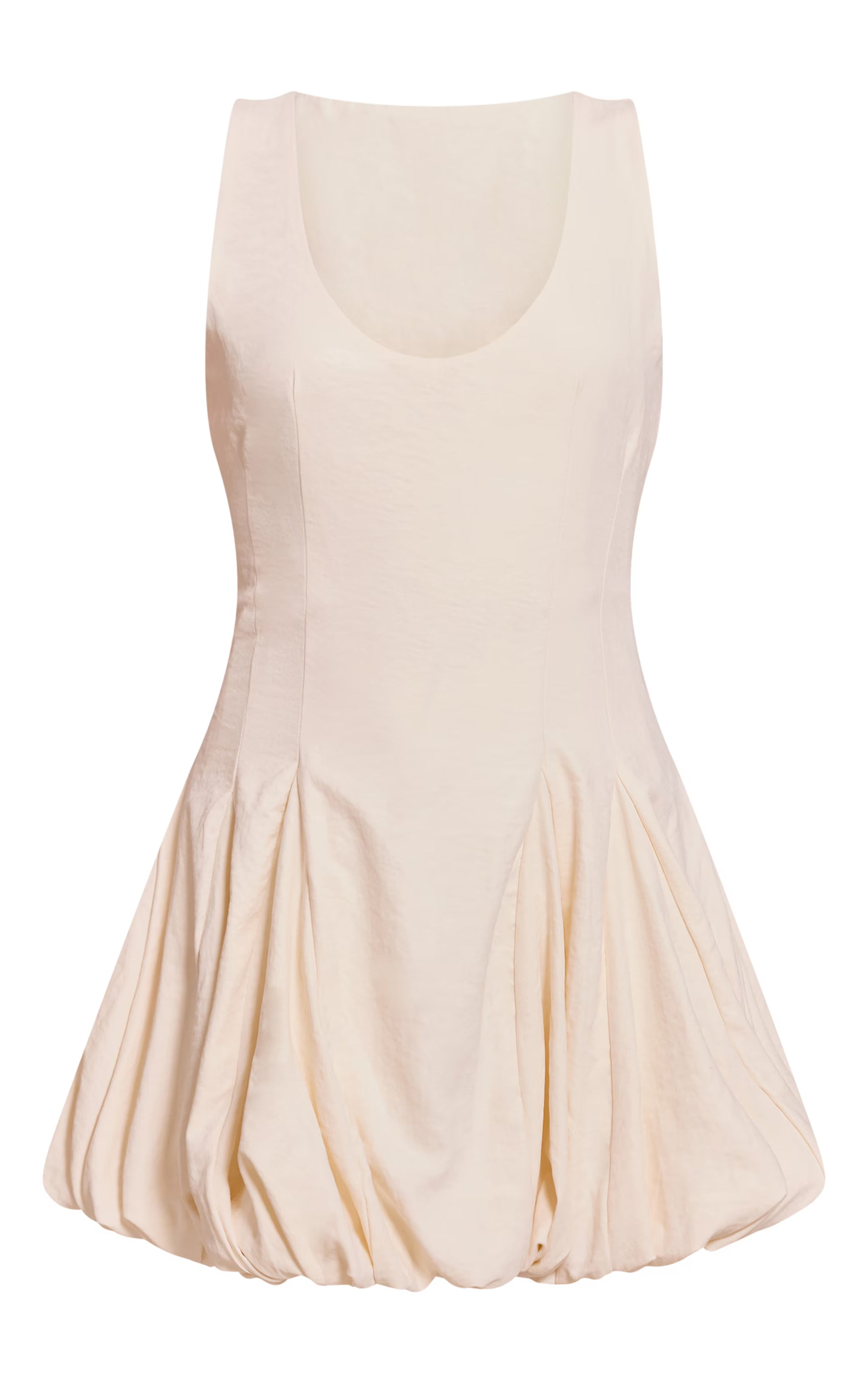Keep it playful in the cream textured scoop neck puffball dress. Designed from cream textured fabric, this mini features a scoop neckline and a voluminous puffball hem for a statement shape. Wear with chunky bangles and gold accessories for a cute and feminine daytime look.