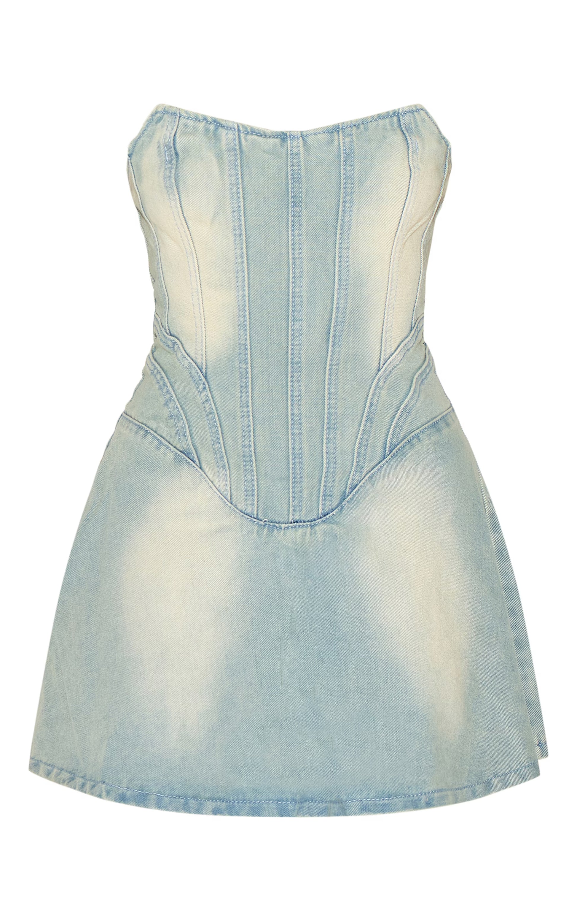 Light Blue Wash Seam Detail Mini Dress