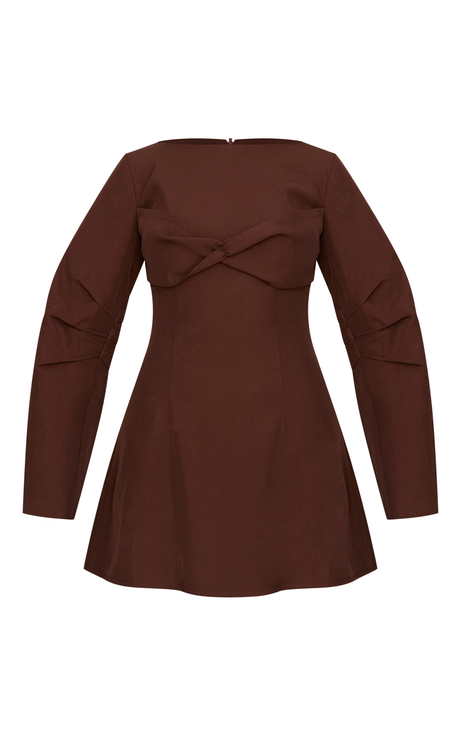 Chocolate Woven Twist Detail Balloon Sleeve Dress