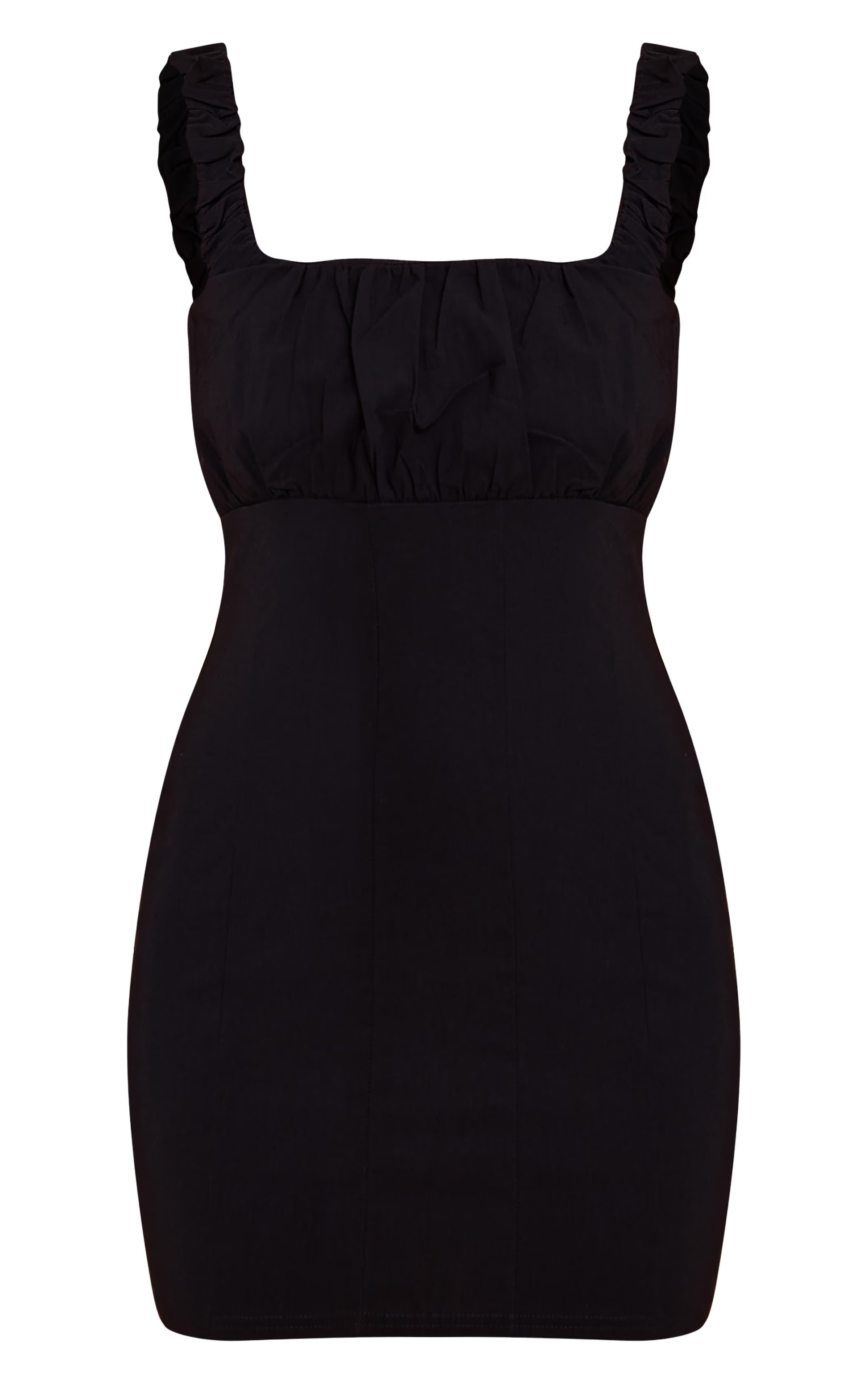 Black Stretch Woven Scoop Neck Ruched Bust Shift Dress