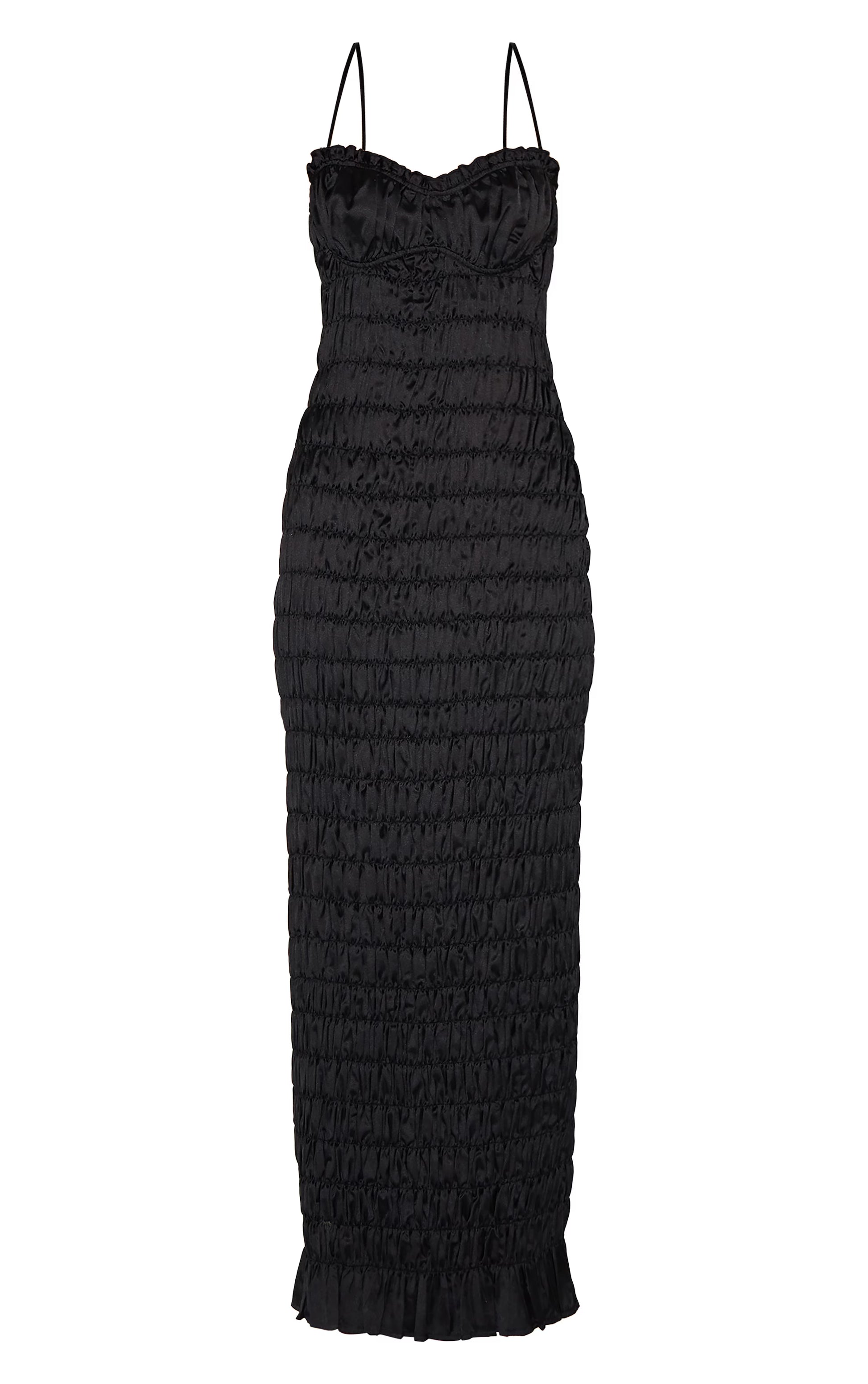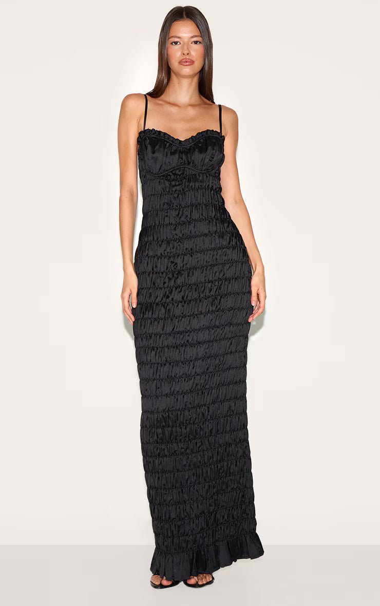 Black Satin Ruched Underwired Maxi Dress