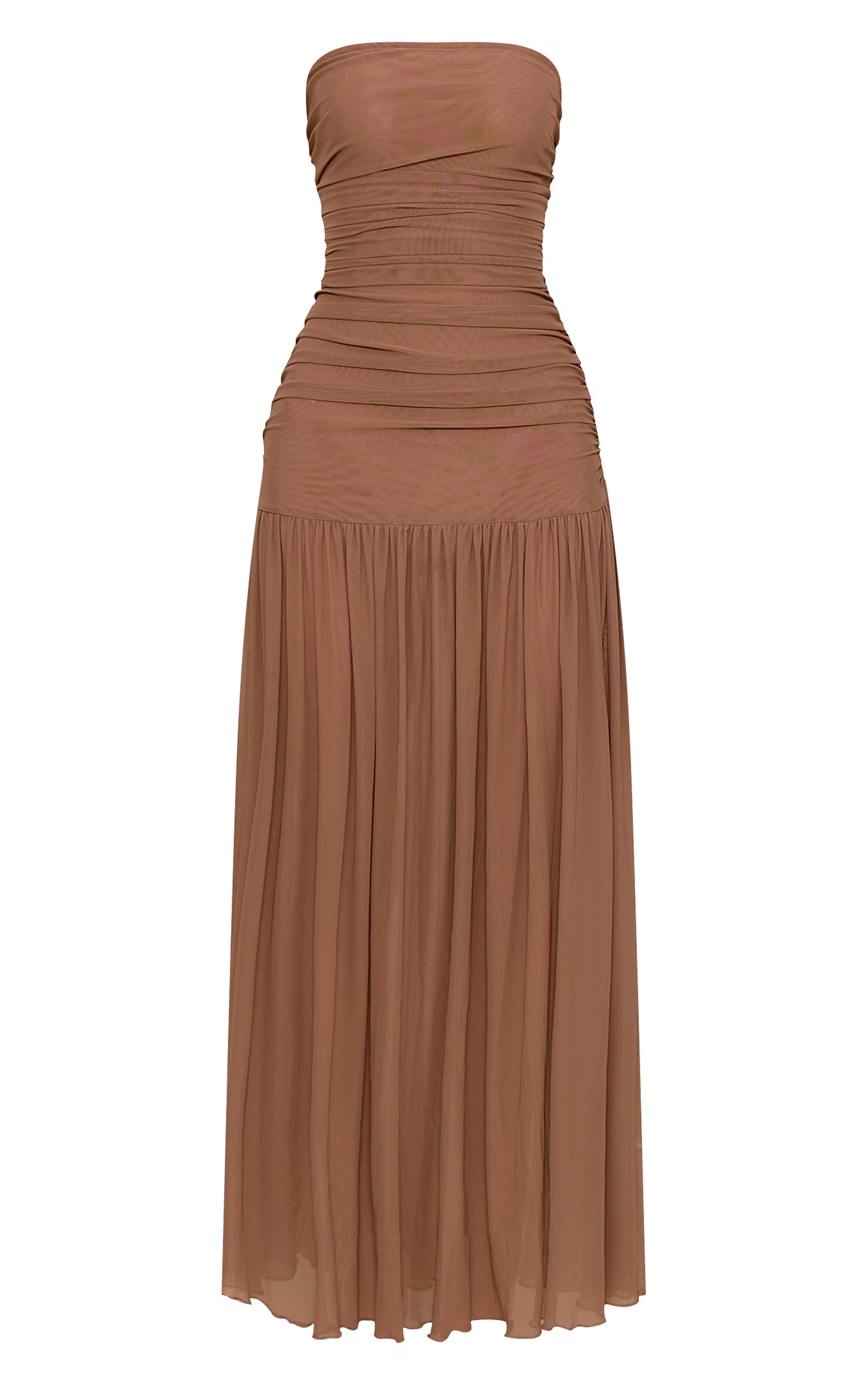 Chocolate Ruched Scarf Dropped Waist Maxi Dress