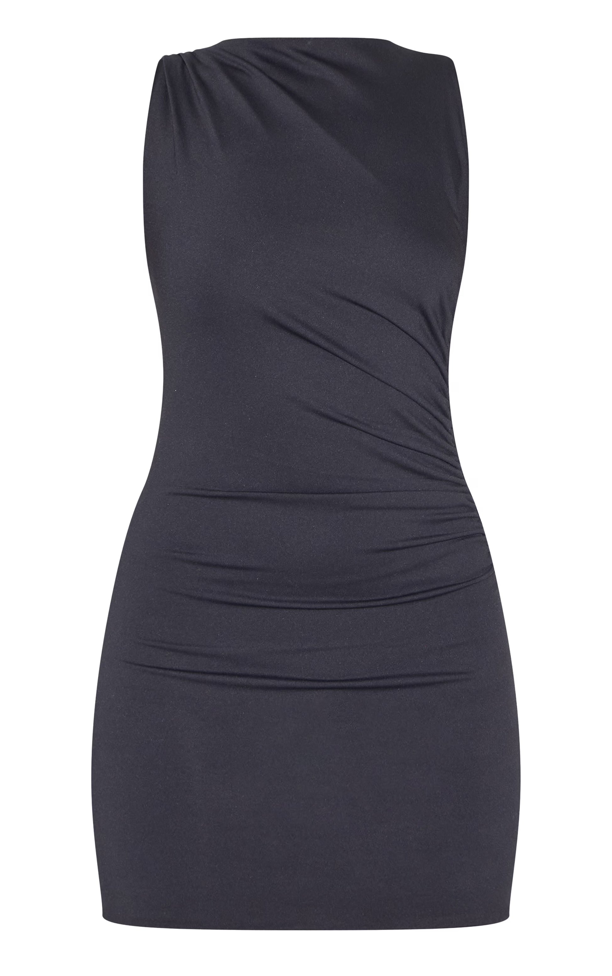 This black soft touch ruched mini dress brings understated elegance to any wardrobe, cut to flatter with thoughtful detailing and a timeless silhouette. Style it your way with sleek, minimal, or bold layers.