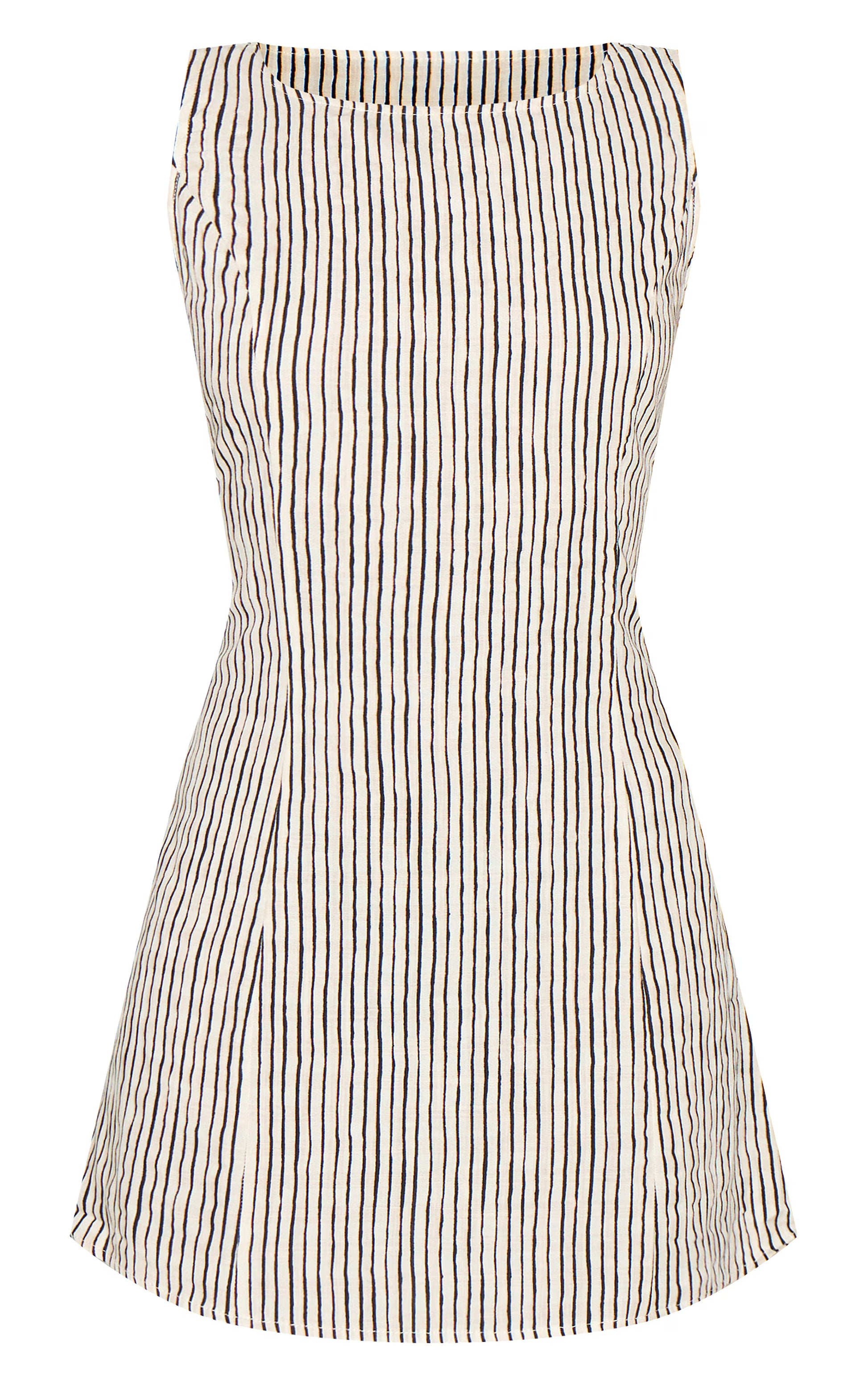 Stay chic in the black striped boat neck dress. Made from a black striped material, featuring a boat neck design, short sleeves, and a flattering A-line fit. Pair with slip on heels and a statement gold earrings for a polished look.