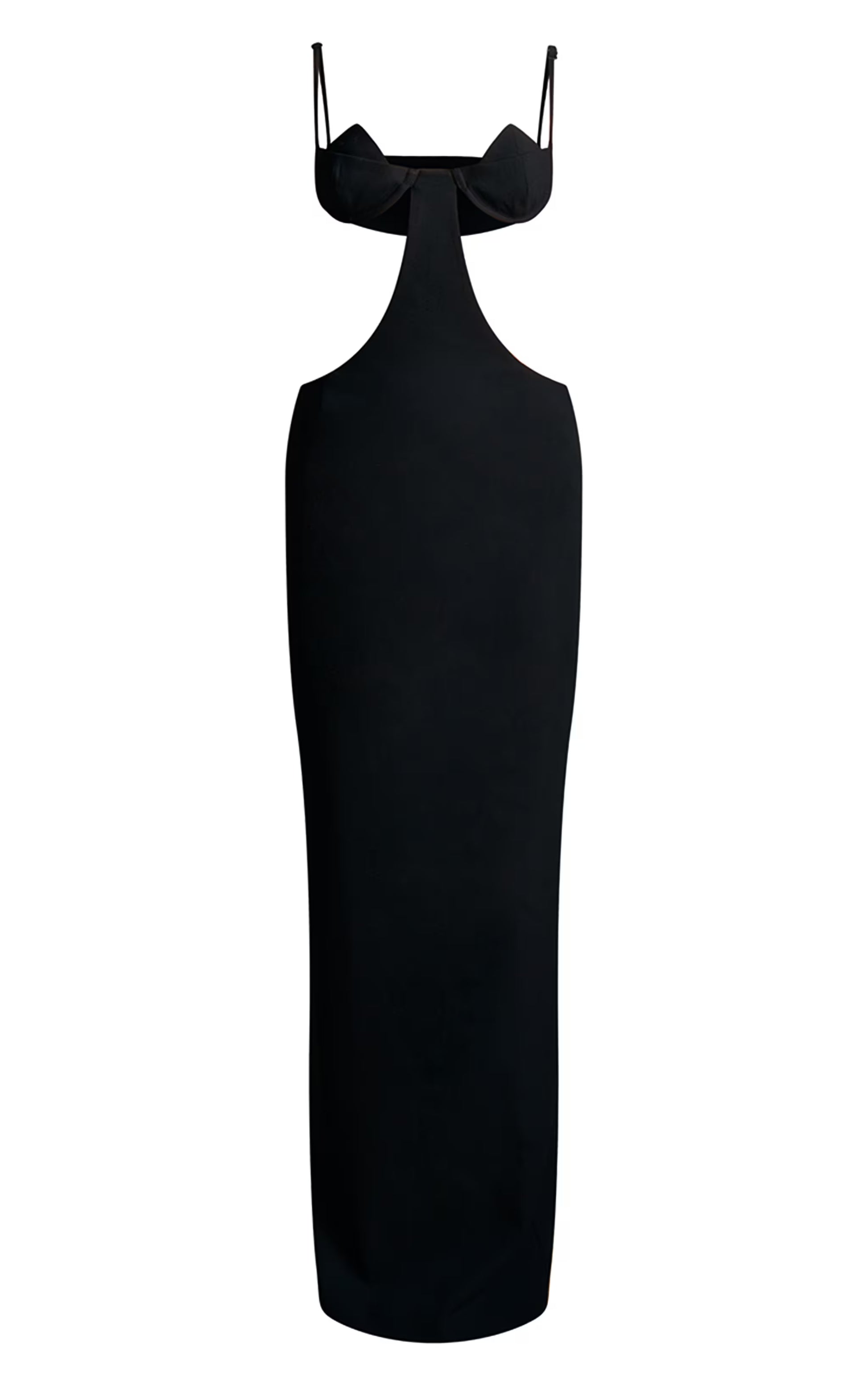 The after-dark essential, redefined. This black tailored maxi dress elevates the evening silhouette with its strategically placed cut-out detail at the bust, offering a glimpse of skin without sacrificing sophistication. The tailored fit creates a streamlined shape from neckline to floor-grazing hem, crafted to flatter the form with precision. Consider this your new go-to for moments that demand a considered approach to dressing. Complete the look with a sculptural gold cuff from our jewelry collection for an artful edge.