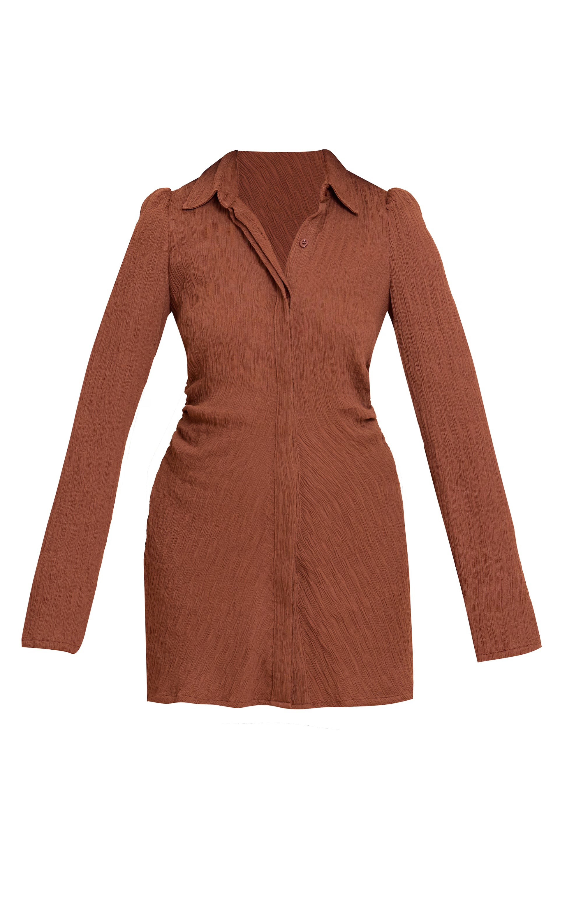 Exude effortless sophistication with the chocolate textured flared sleeve shirt dress. Crafted from a lightweight textured woven fabric, this dress features a relaxed silhouette enhanced by voluminous flared sleeves and a sharp shirt collar that adds a tailored touch. The rich chocolate hue offers timeless appeal, while the button-down front allows for versatile styling — wear it buttoned for a sleek finish or slightly undone for a more relaxed vibe. Pair with heels and a structured bag for an elevated take on casual dressing, and add gold hoop earrings for an effortlessly polished look.