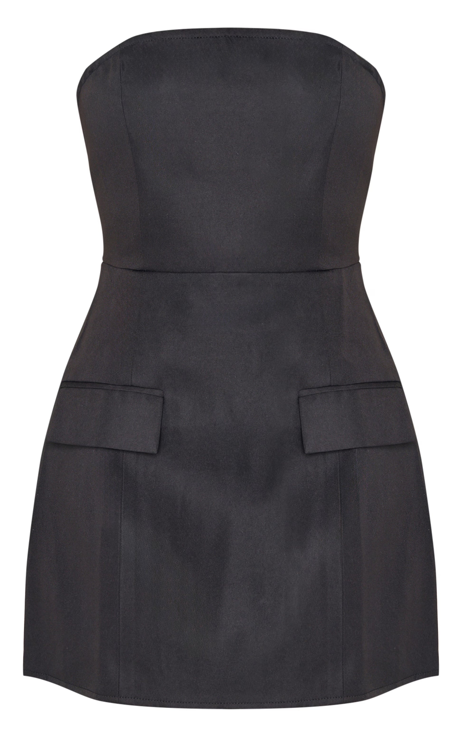 A masterclass in minimalist dressing. This black bandeau shift dress offers a clean silhouette that speaks volumes. The bandeau neckline creates a refined décolletage, whilst the strategic pocket detailing adds a touch of utilitarian cool. Crafted in a structured fabric, this dress holds its shape impeccably. Elevate the look further with a sculptural gold cuff from our jewelry collection, adding a touch of modern art to your ensemble.