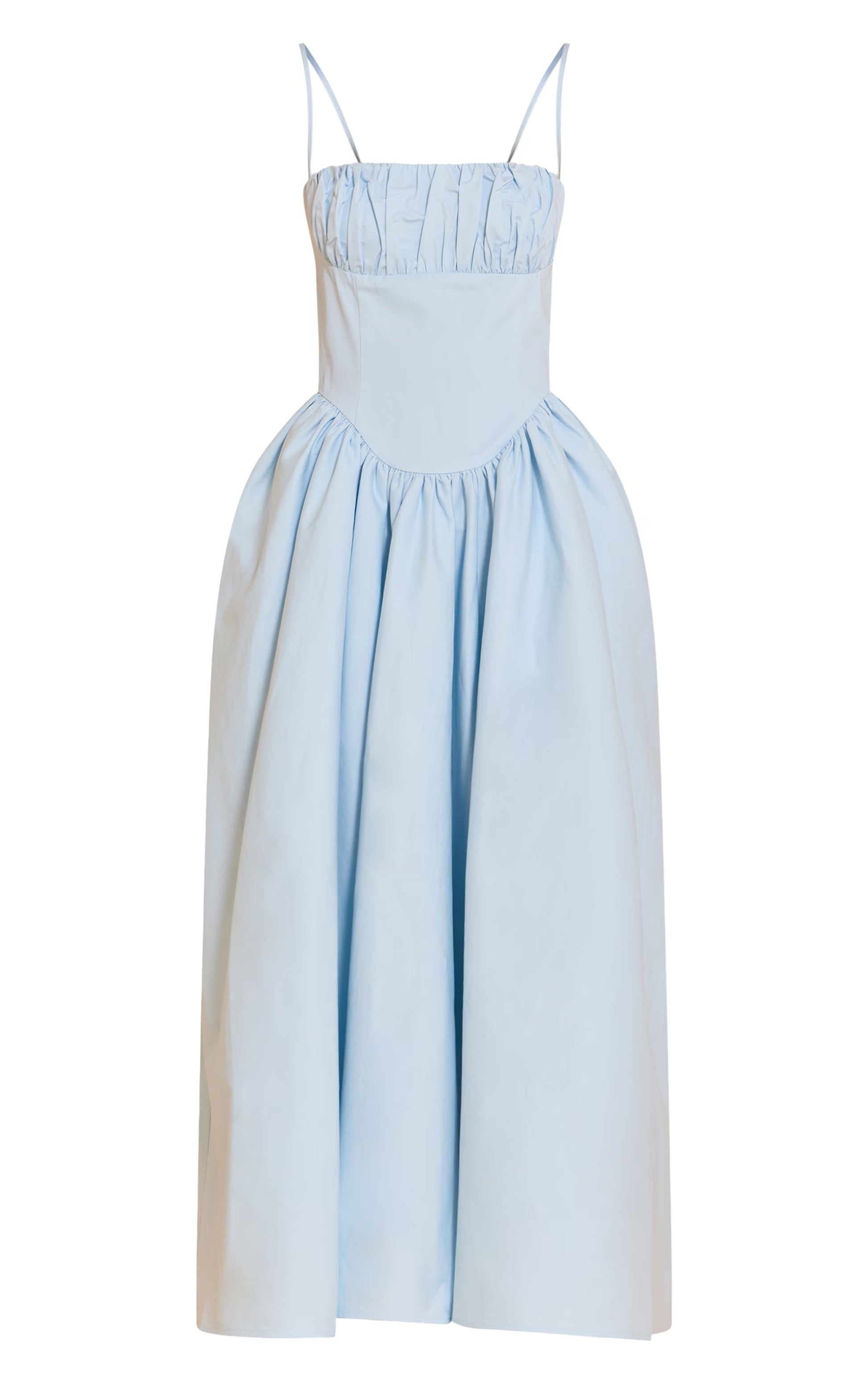 Light Blue Ruched Bust Corset Strappy Midaxi Dress