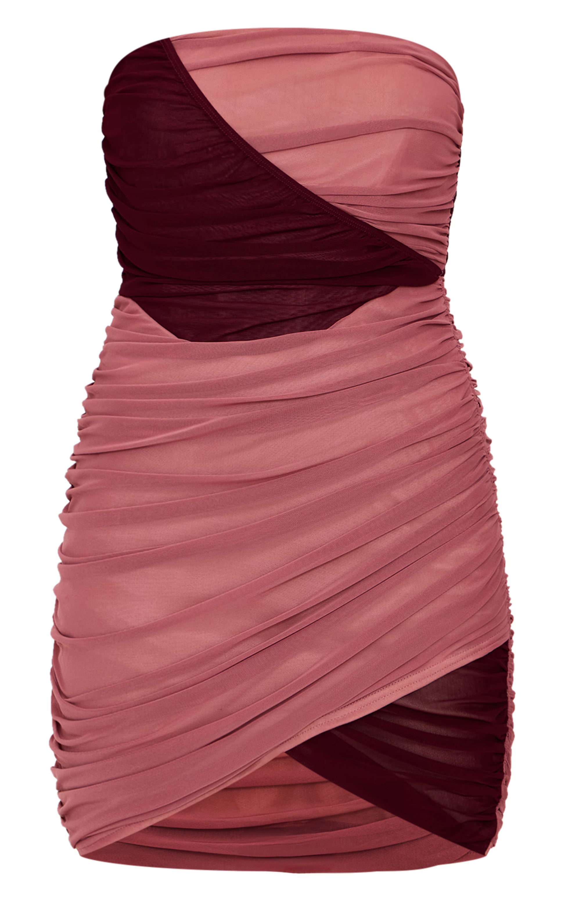 Light Pink Mesh Contrast Bandeau Mini Dress