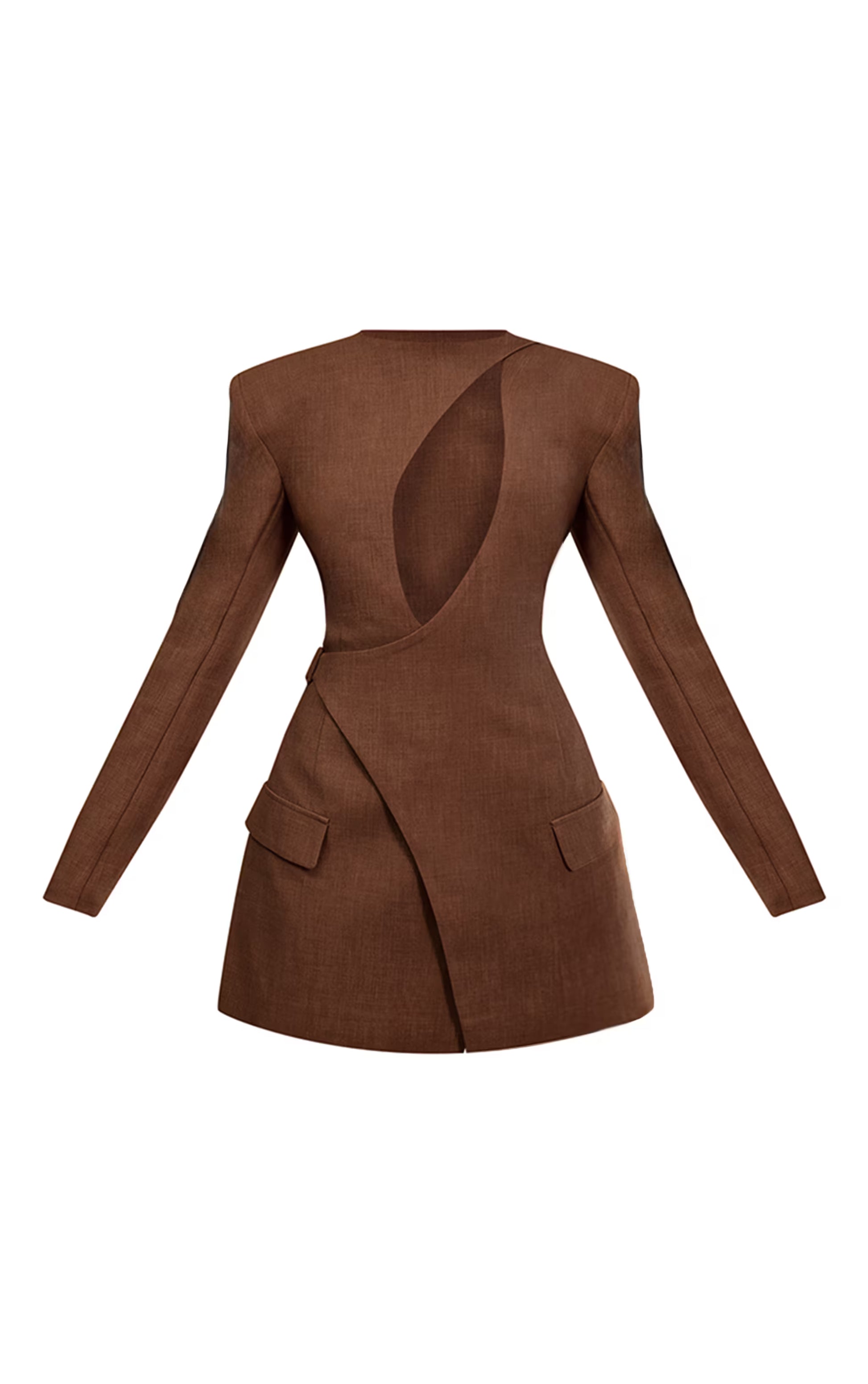 PLT Label Mocha Tailored Asymmetrical Cut Out Blazer Dress