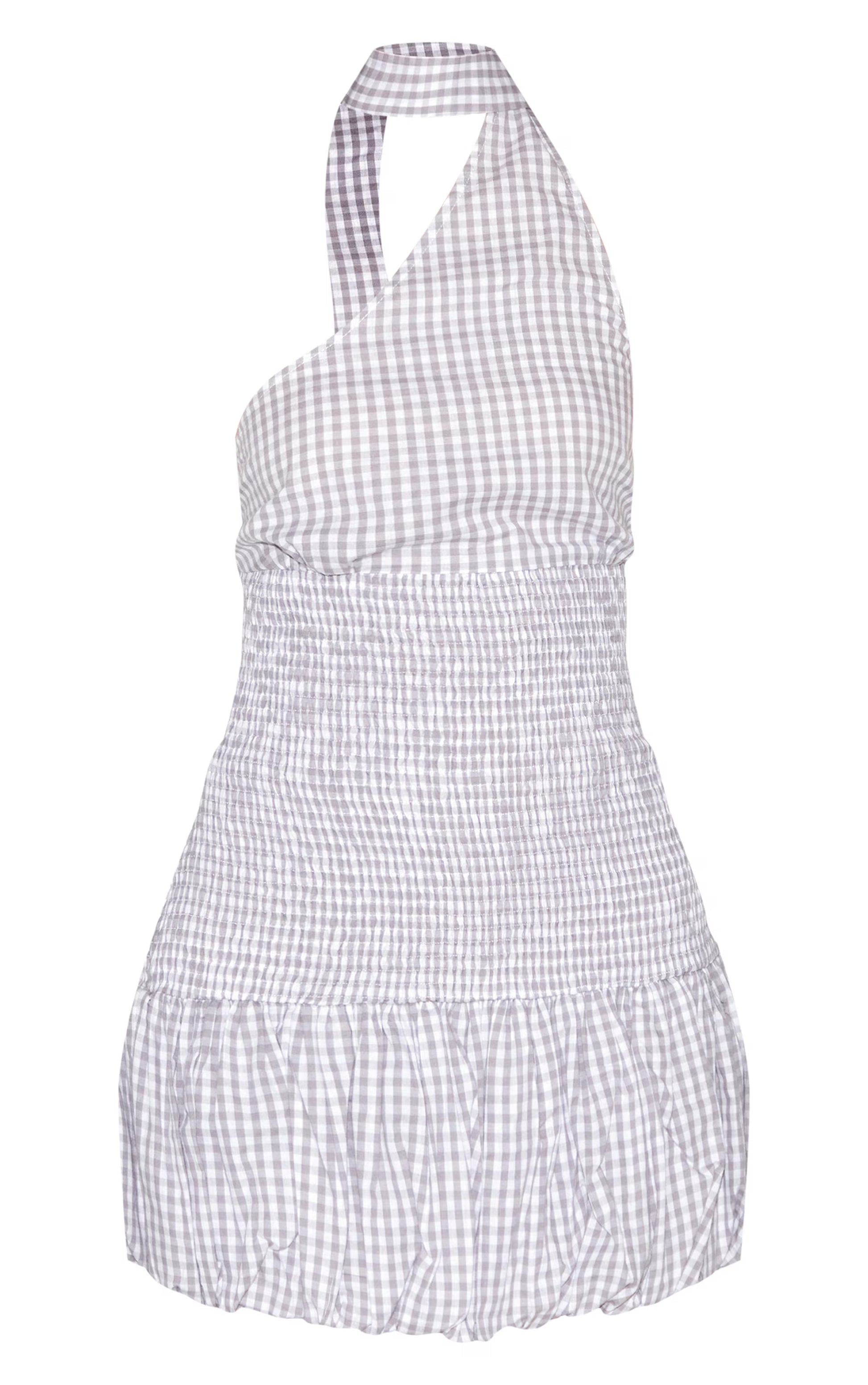 Get ready to stand out in this grey gingham shirred puffball mini dress. Made from a grey gingham fabric with shirred detailing and a puffball silhouette in a mini length. Pair with ballet flats and a mini bag for an ultra-feminine finish.