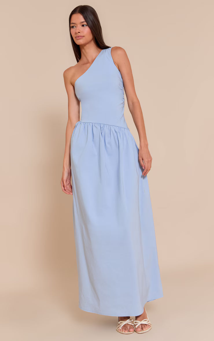 Light Blue Stretch Woven One Shoulder Maxi Dress