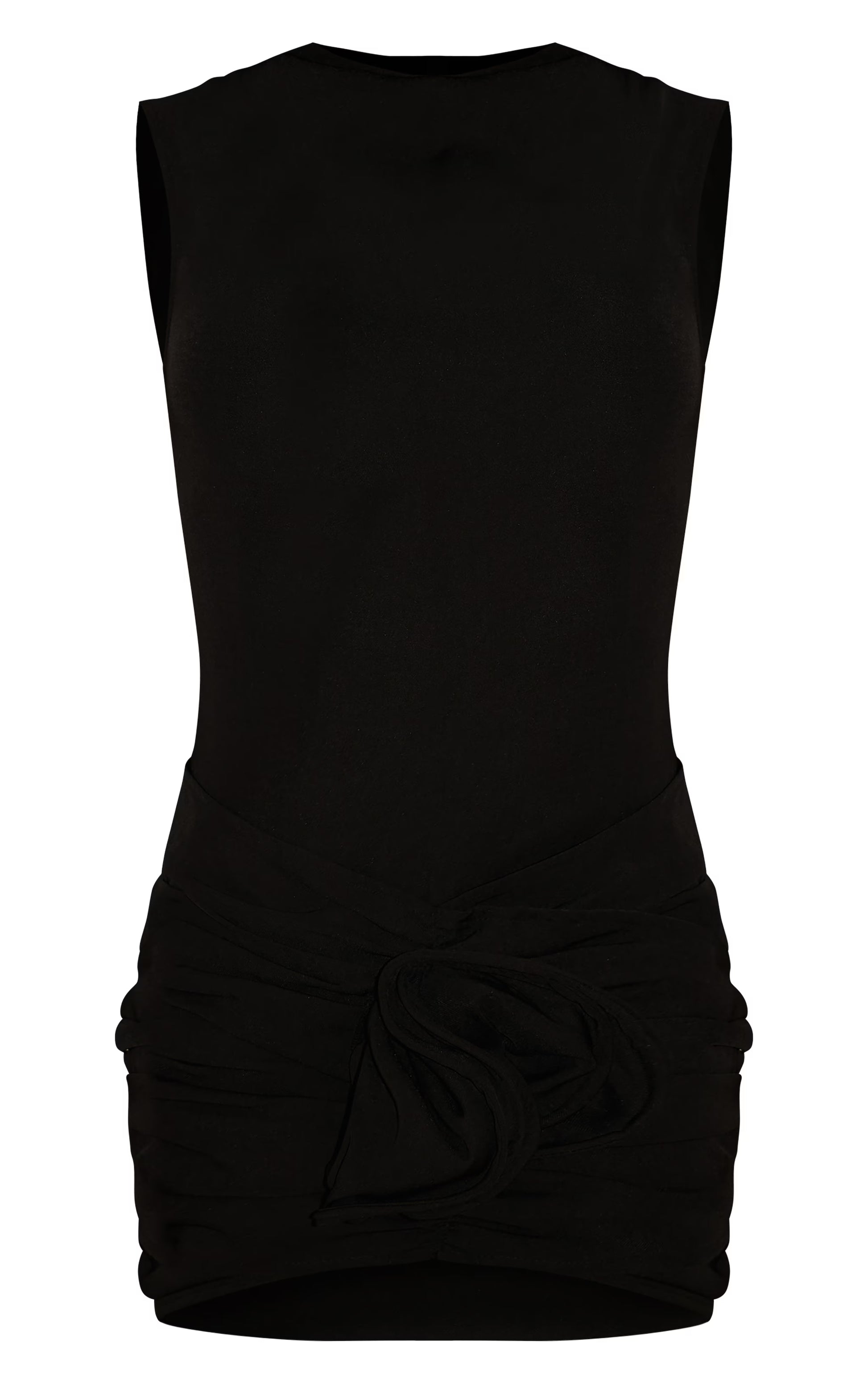 This season's after-dark aesthetic calls for considered silhouettes and intriguing prints. This black floral mini dress offers a modern take on event dressing. Cut from a woven fabric, the dress features a high neckline balanced by a statement-making ruched finish, injecting texture and a touch of the avant-garde. Accessorise with a chainmail shoulder bag to amplify the confident mood.