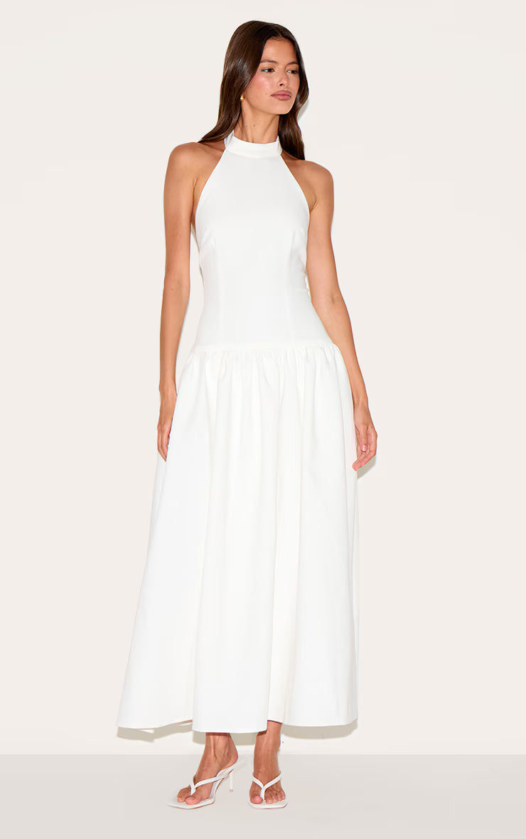 Turn heads in this white tailored high neck midaxi dress. Built from tailored white fabric, it offers a clean-cut, minimal look with refined neckline detailing. Team this midaxi dress with a pair of heels and your go-to accessories for a look like no other.