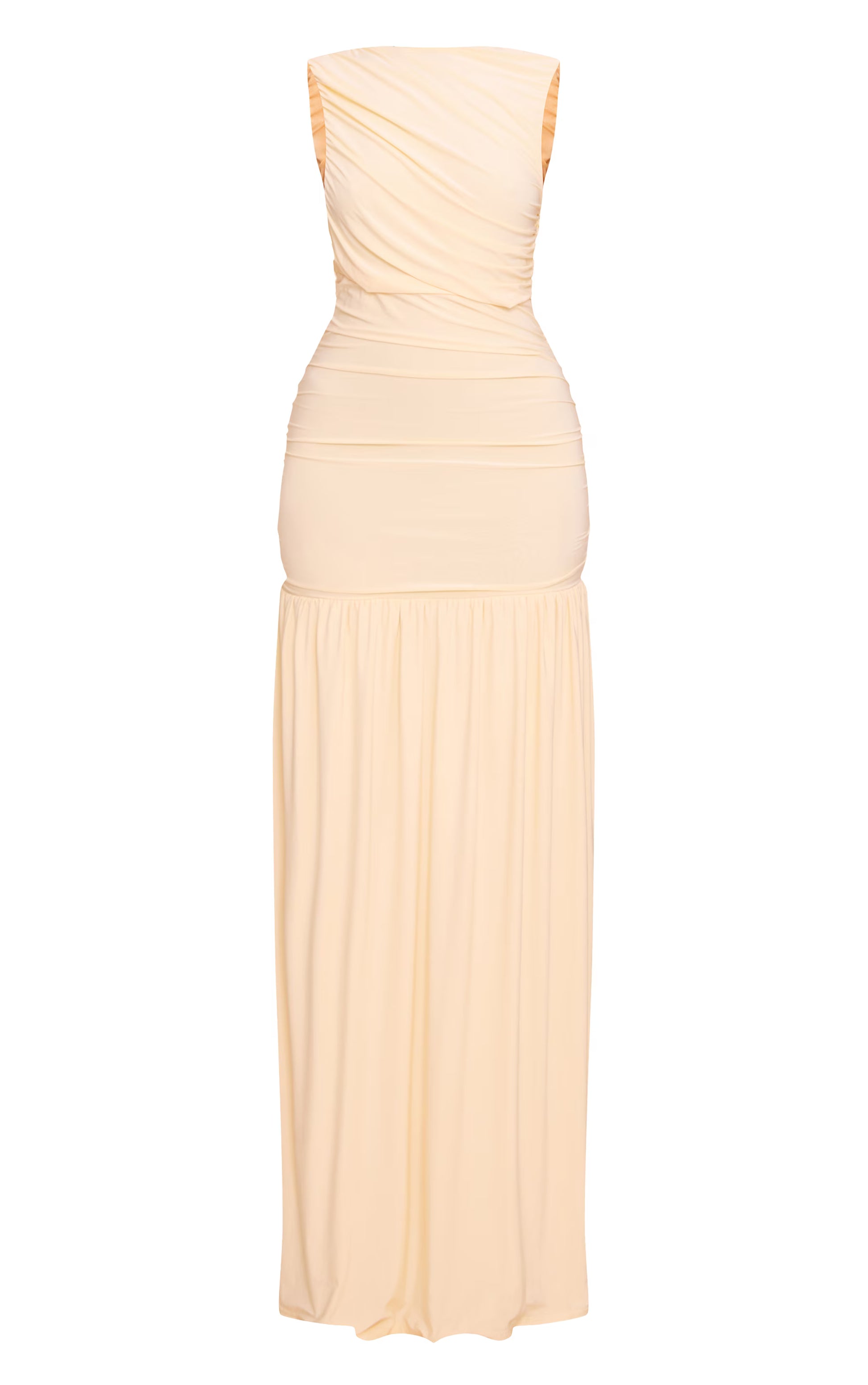 Bring a soft glow in the lemon boat neck ruched detail maxi dress. Made from a lemon stretch material, this maxi dress features a boat neckline and all-over ruching for a flattering fit. Style with gold jewelry and slip-on heels for an uplifting finish.