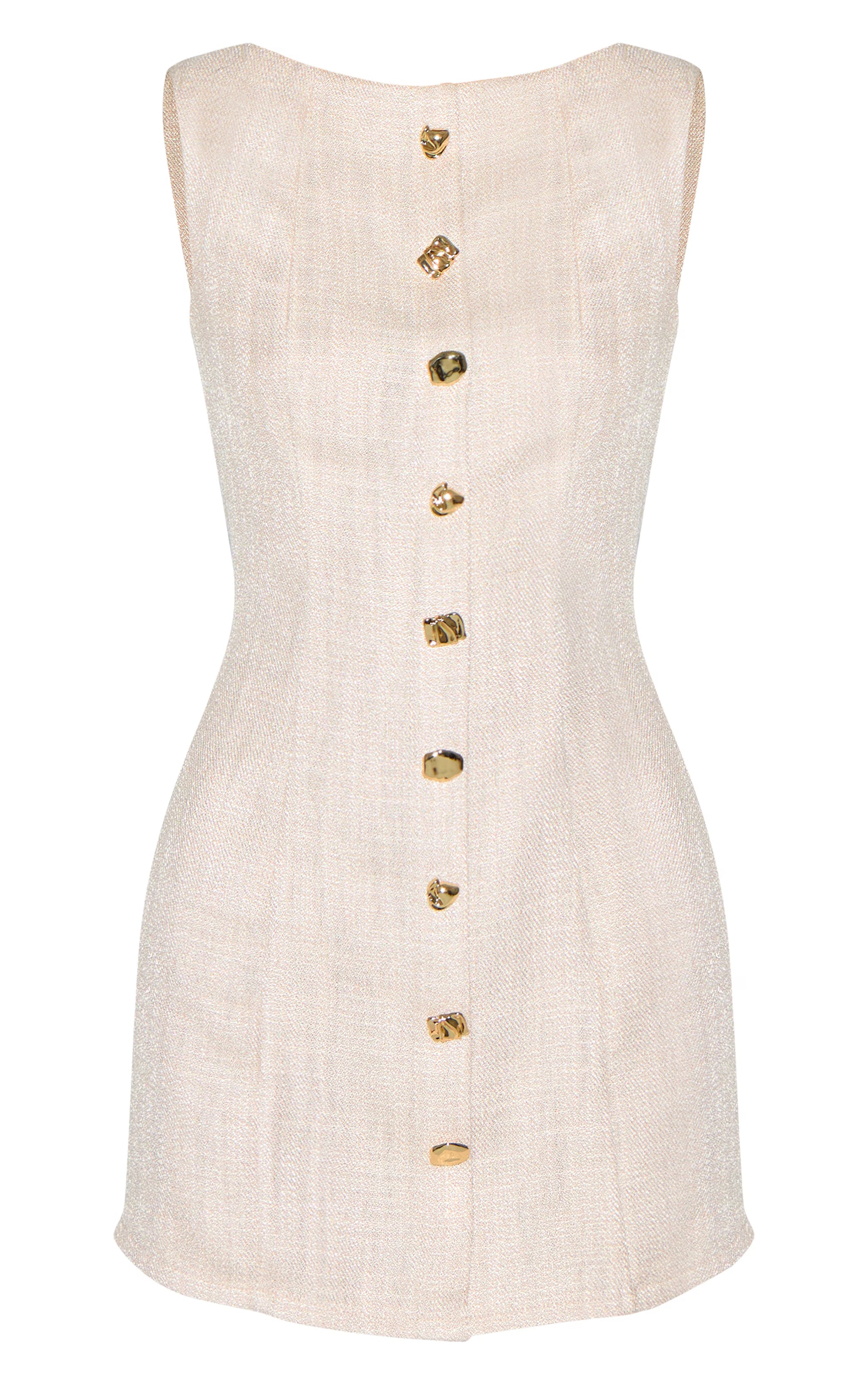 Make a statement in this stone twill button down bodycon dress. Crafted from a stone twill fabric with button down front and a figure-hugging bodycon fit. Team with heeled stiletto sandals and a structured bag for a bold look.