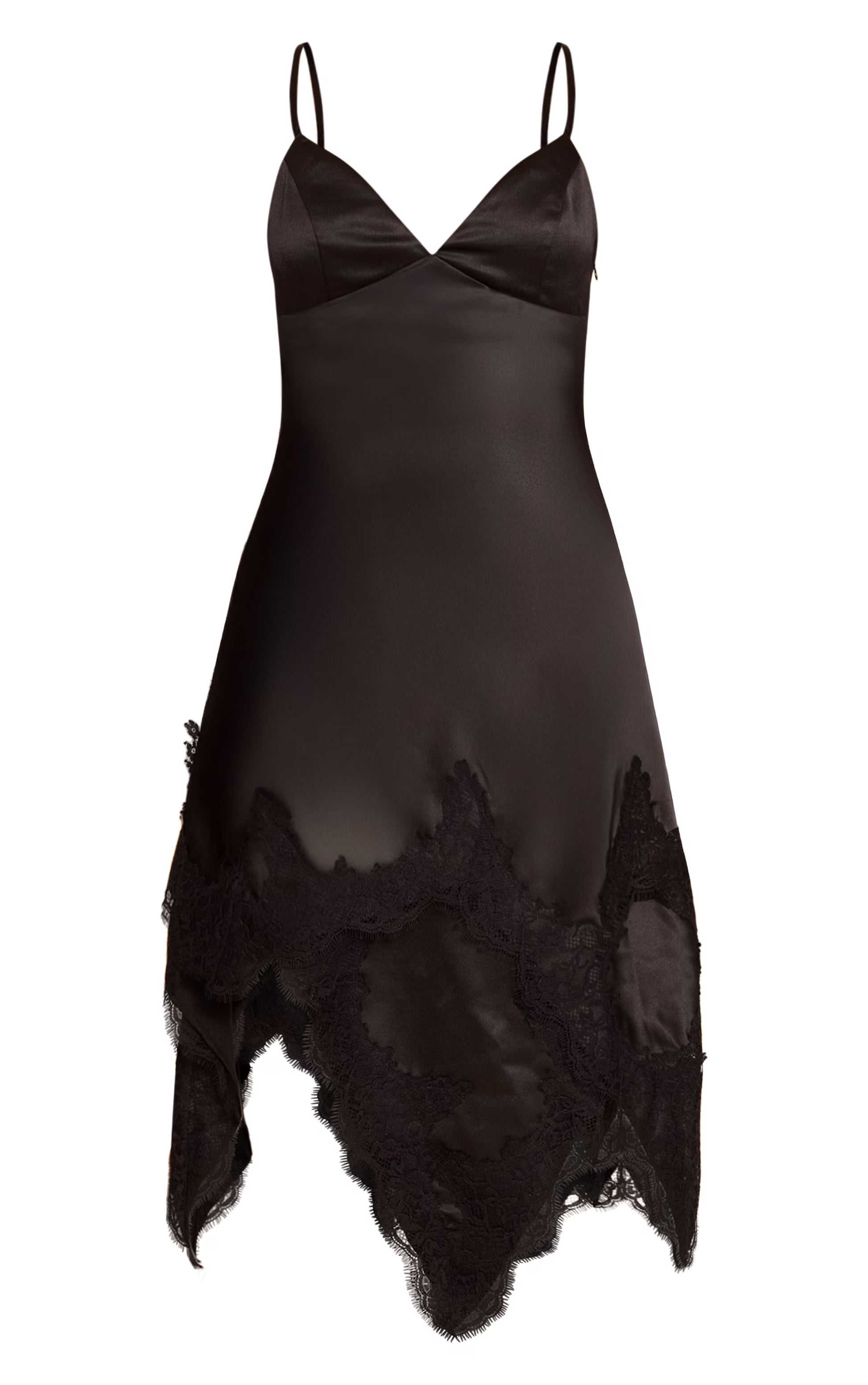 Black Satin Lace Trim Detail Mini Dress