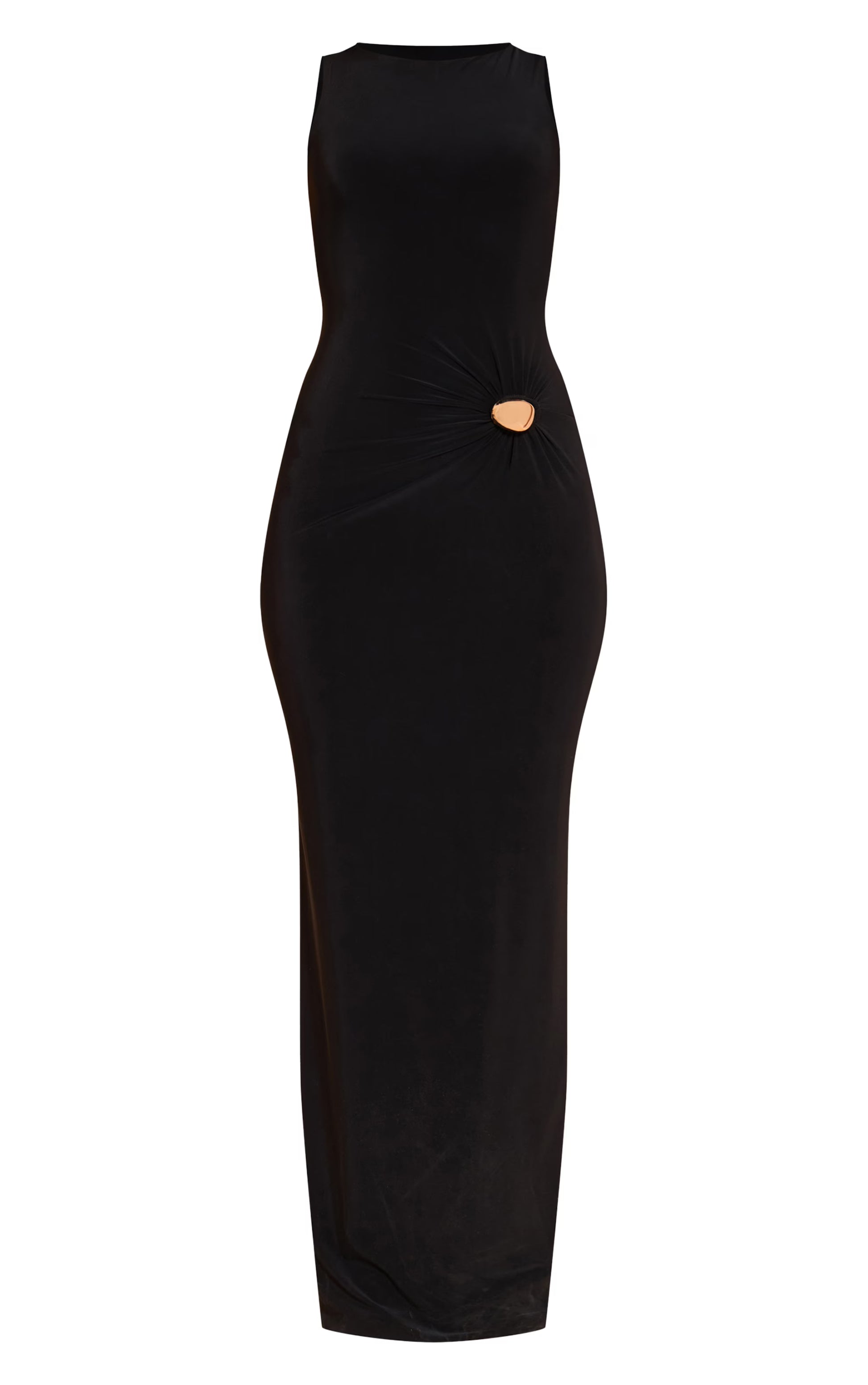 Black Slinky Gold Trim Sleeveless Maxi Dress