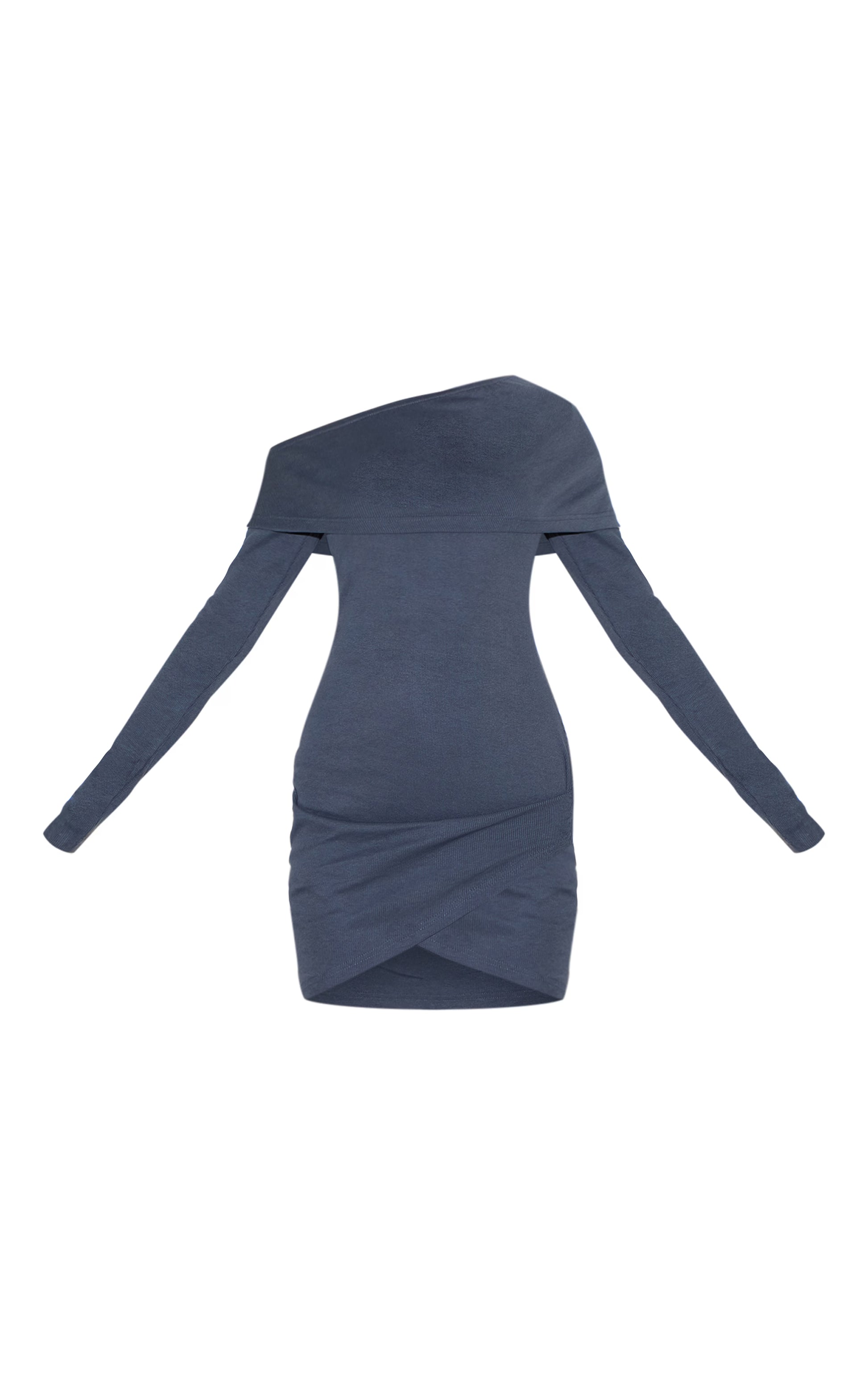 Navy Rib Bardot Wrap Mini Dress