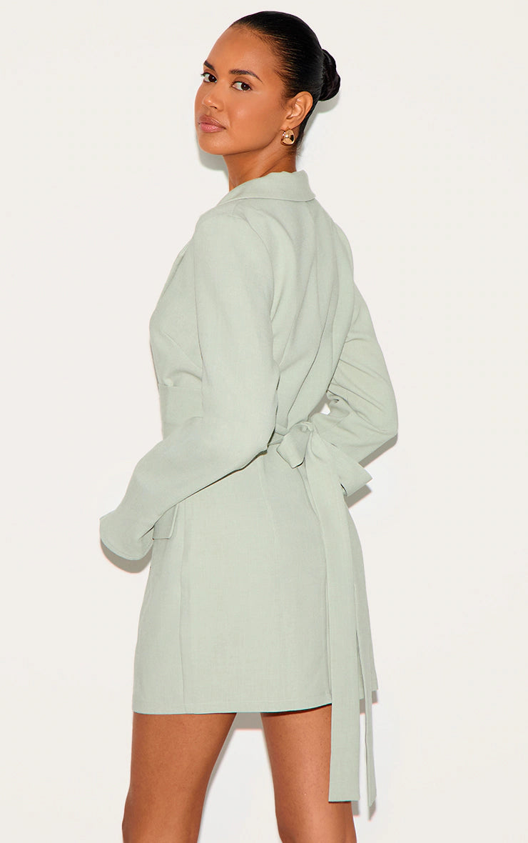 Make heads turn in this sage grey woven belted blazer dress. Made from a sage green woven material with a belted design and a chic blazer style. Simply pair this blazer dress with heels and simple gold accessories to instantly elevate the look.