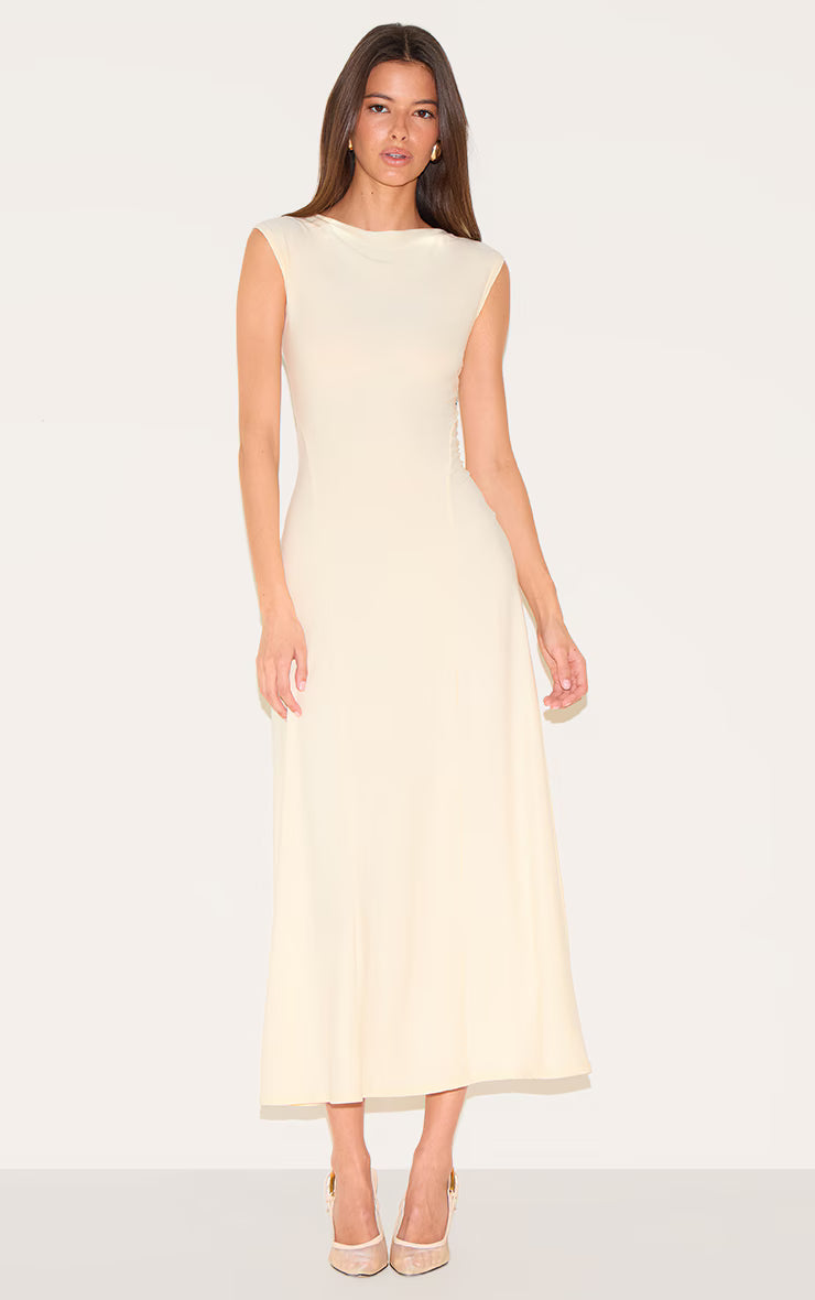 Refine your evening aesthetic with this lemon maxi dress. Cut from a lemon hue that drapes effortlessly, this piece features an panelling detail and floaty design for a considered silhouette. This lemon asymmetric panelled floaty maxi dress lends a subtle sophistication, making it an ideal canvas for statement add a pair of slip on heels and jewelry from our curated collection