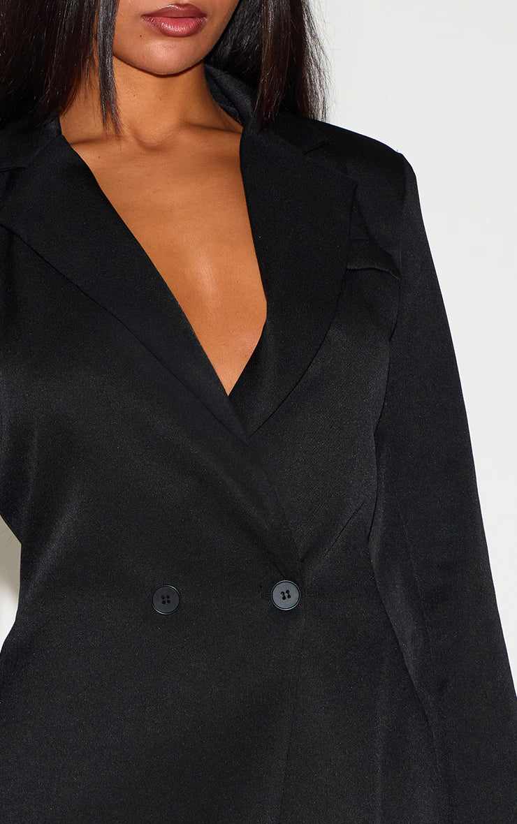 Black Woven Double Breasted Cinched Waist Blazer Dress