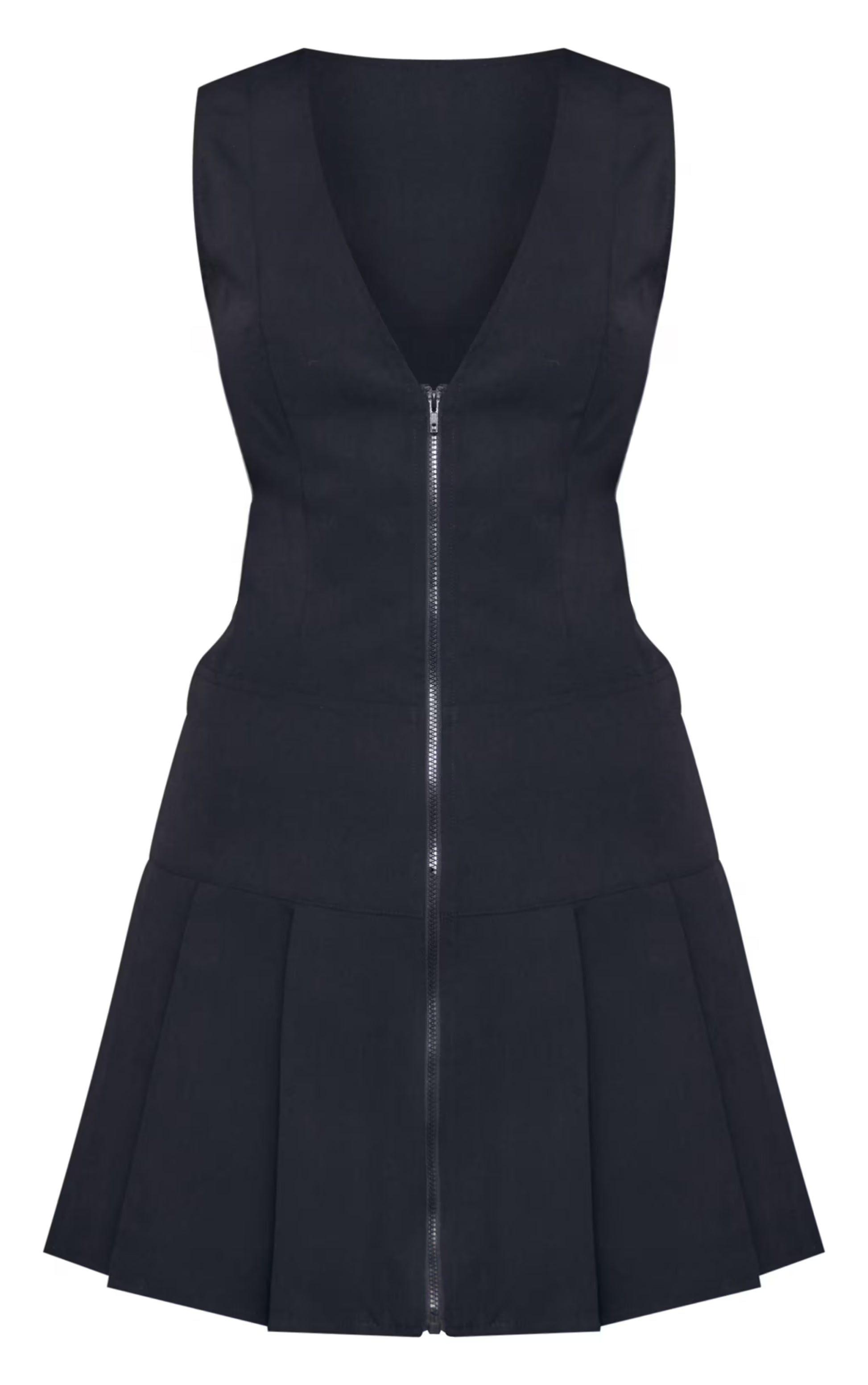 Black Tailored Woven Zip Pleated Shift Dress