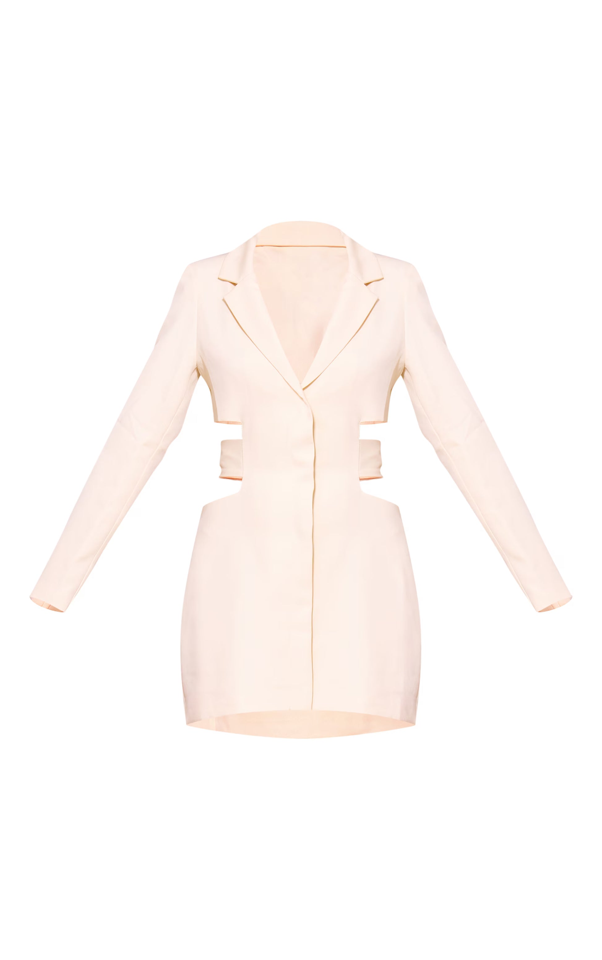 The blazer dress, reimagined. This cream woven iteration offers a sharp silhouette with an element of considered design. Note the subtle cut-out detailing which elevates the classic form, and the tie-back fastening that allows for a personalised fit. Crafted from a tactile woven fabric, it holds its shape impeccably. Complete the look with a delicate gold chain from our jewelry collection for a refined evening aesthetic.