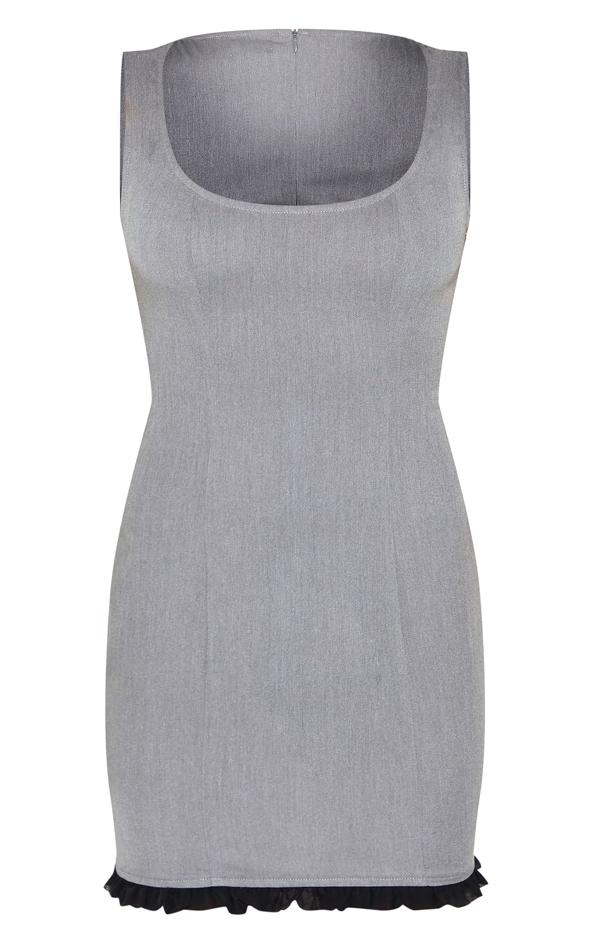 Grey Scoop Neck Frill Hem Bodycon Dress