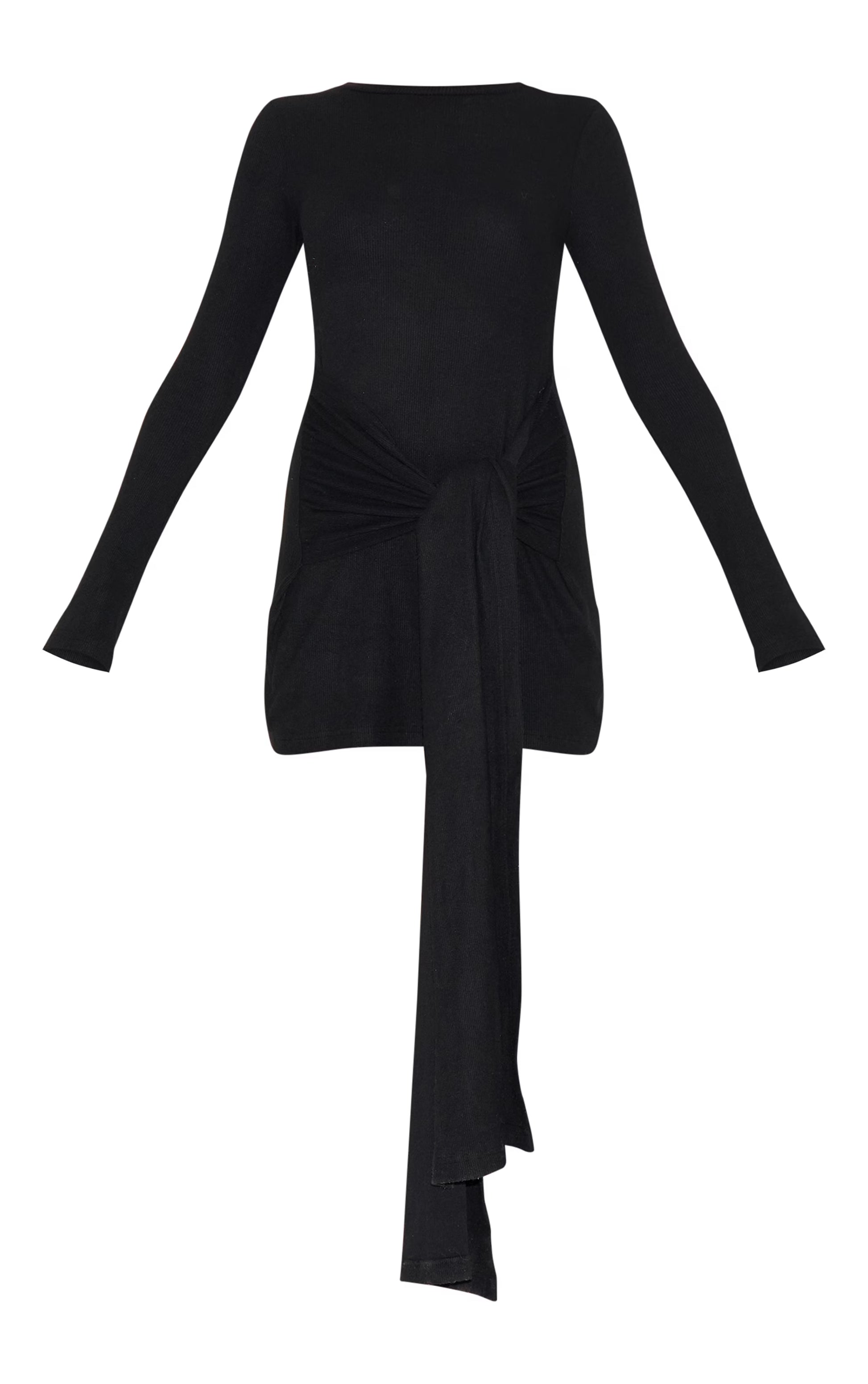 Black Heavy Brushed Rib Wrap Tie Bodycon Dress