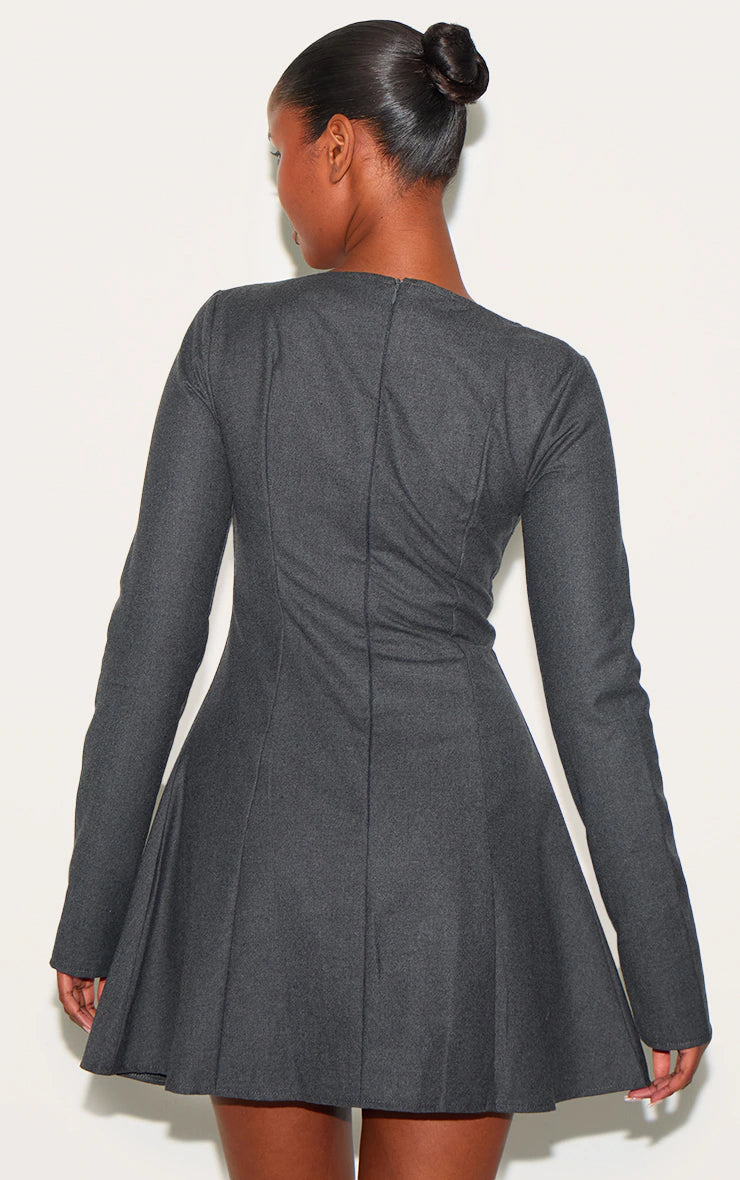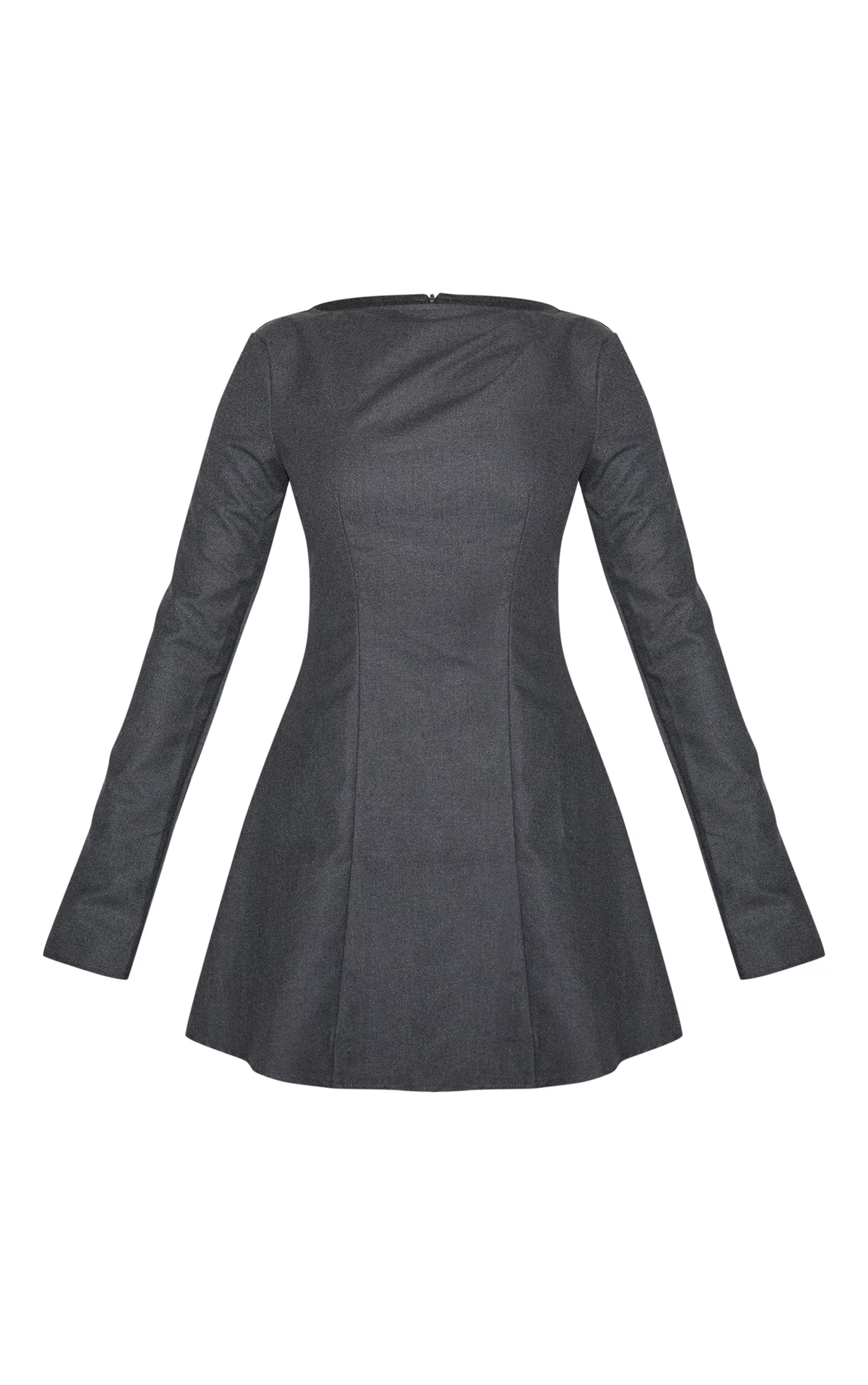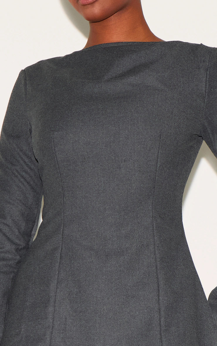 Grey Structured Woven Boat Neck Shift Dress