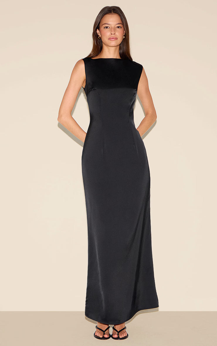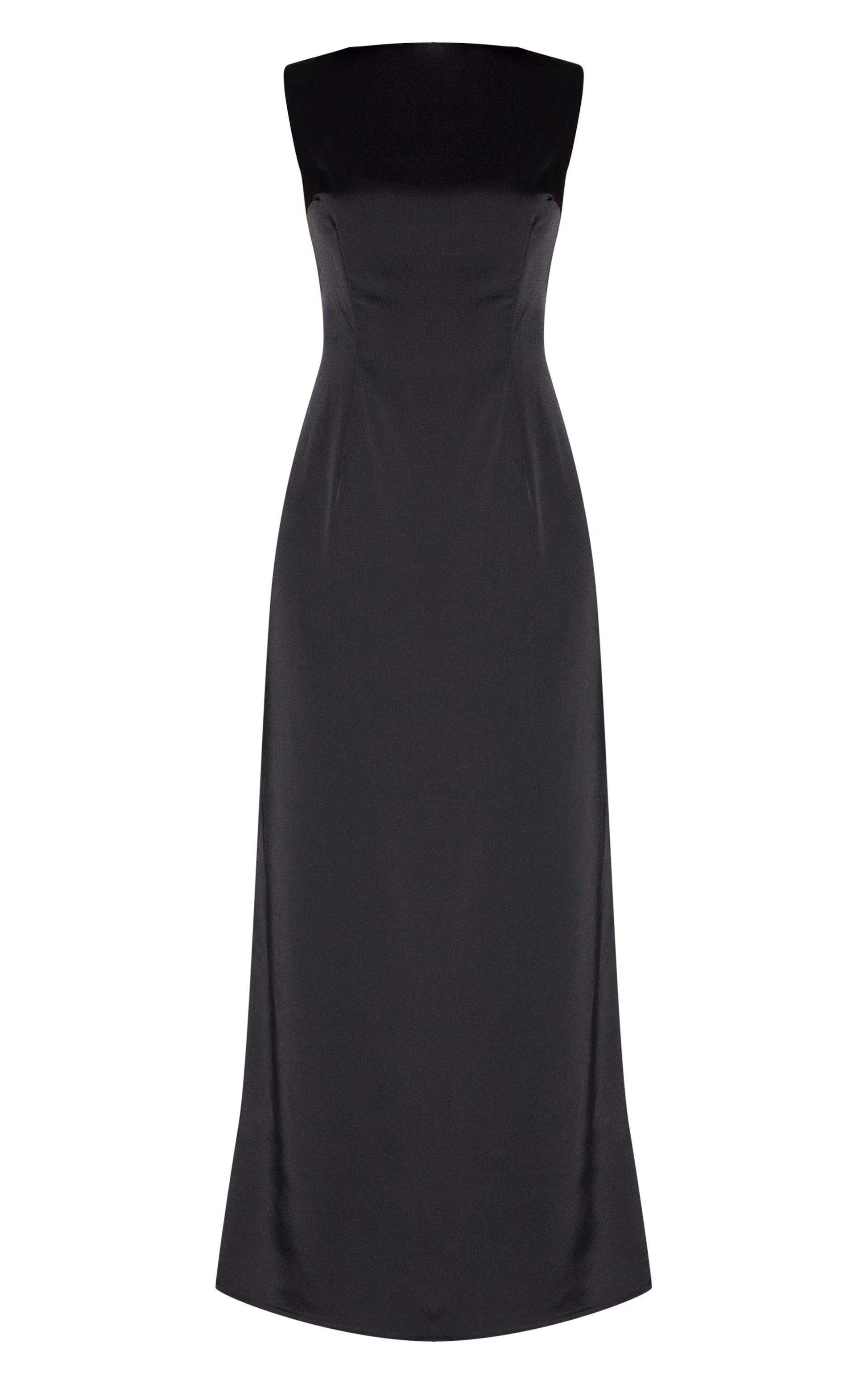 Exude elegance in this black bridesmaid satin boat neck maxi dress. Crafted from black satin with a boat neck and full-length finish for a sophisticated moment. Complete the look with delicate earrings and sleek heels for formal finish.