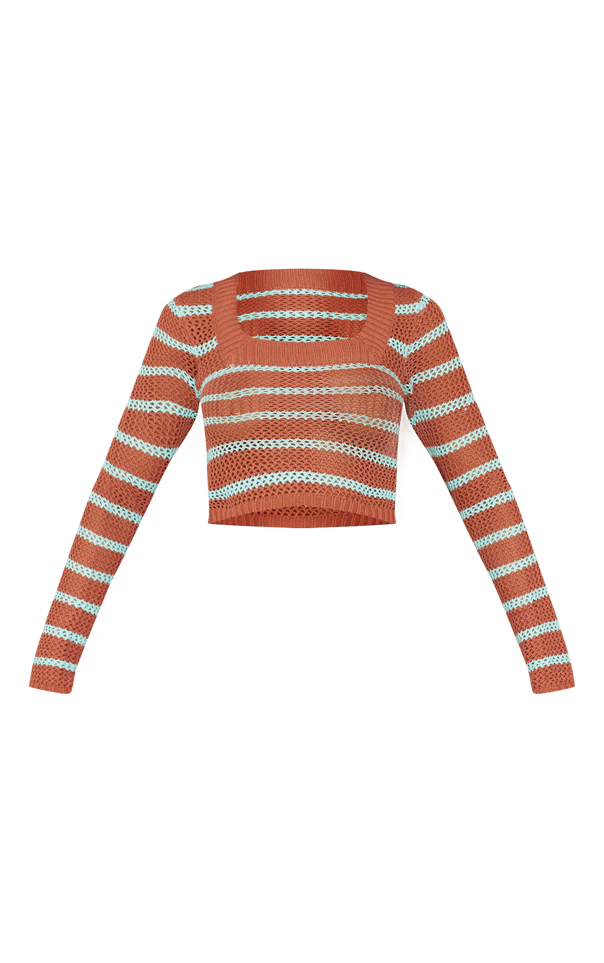 Nail major trends with this mocha stripe crochet knit square neck long sleeve top. This top is brought to you in a mocha stripe crochet knit material with a square neck and long sleeves, what's not to love? This top is calling your name. Style this with the matching skirt, sandals and accessories for a look like no other.