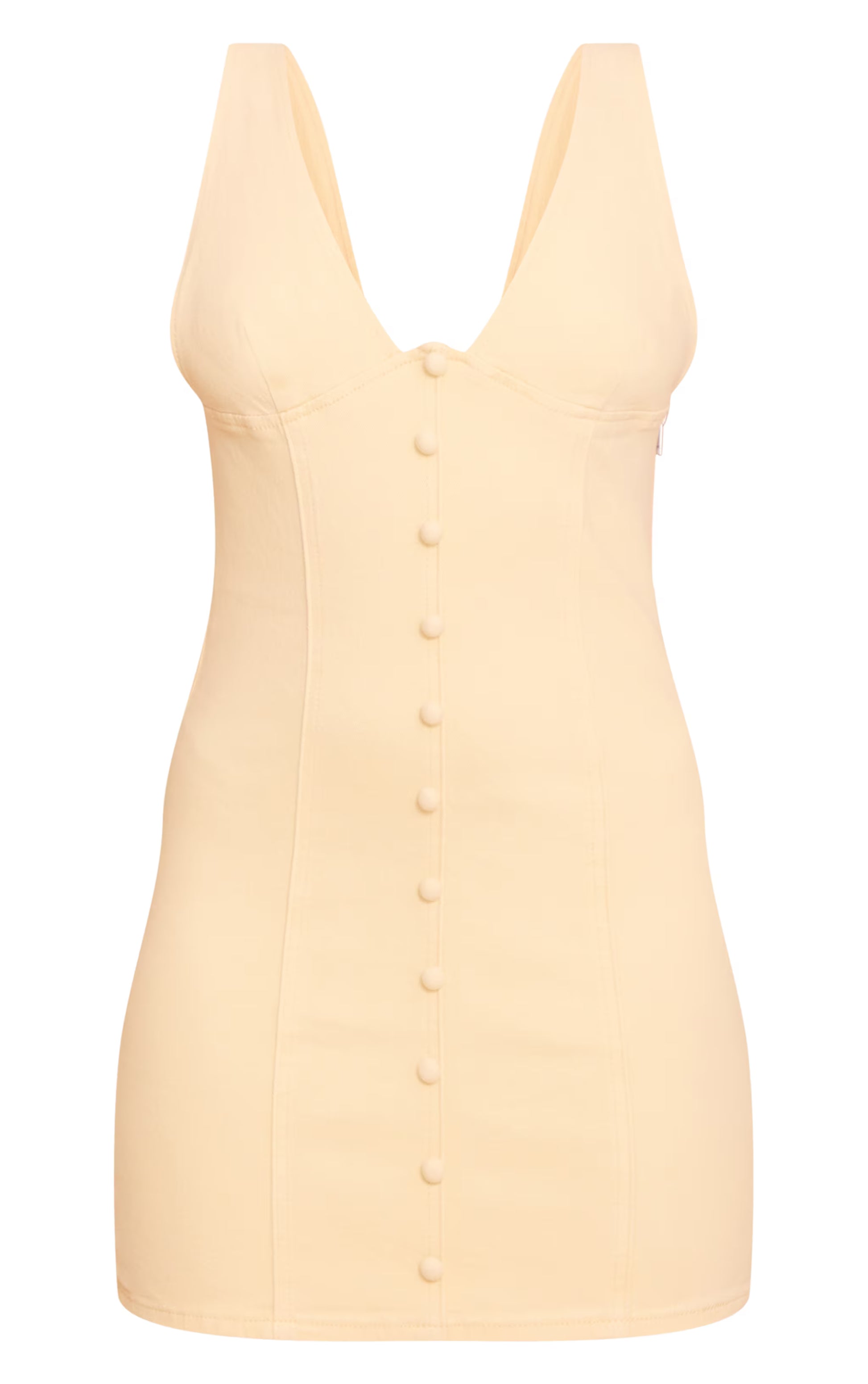 Brighten your denim collection with the lemon button detail denim mini dress. Made from sturdy yet soft denim with a structured fit and standout button accents, this dress flatters while staying playful. Style it with kitten heels and gold jewelry for a cute daytime look.